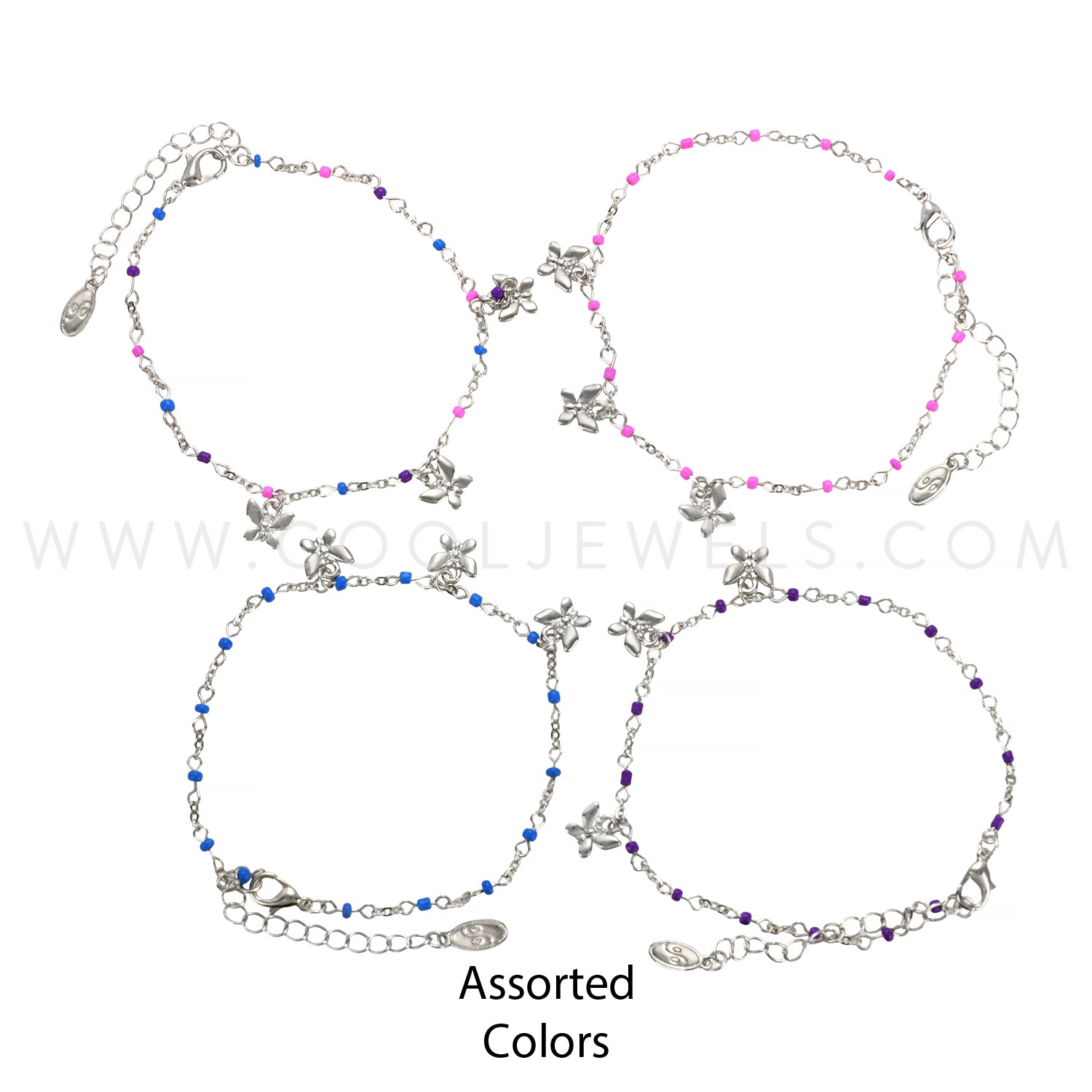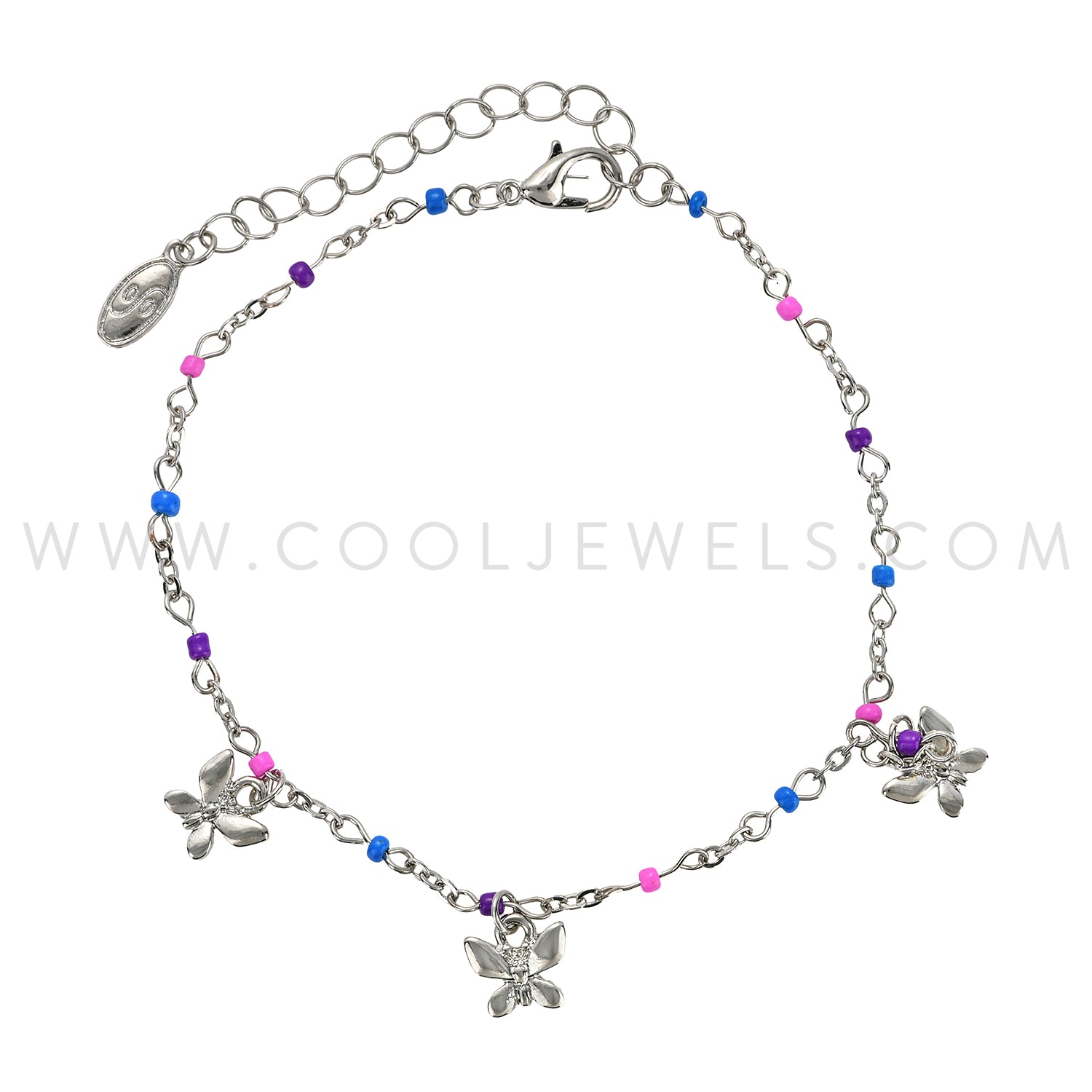 LINK CHAIN ANKLET WITH BEADS & BUTTERFLY PENDANTS - ASSORTED BEAD COLORS