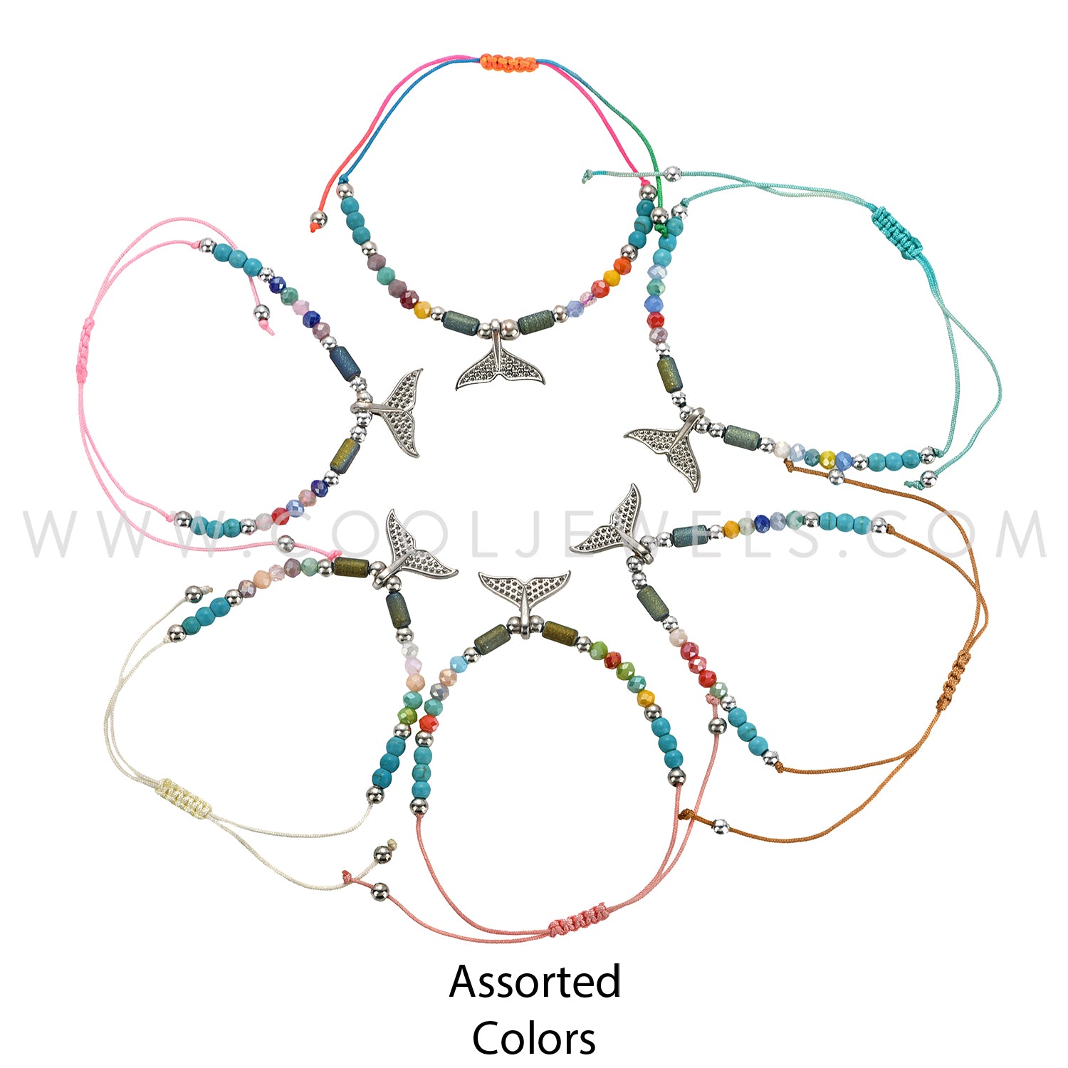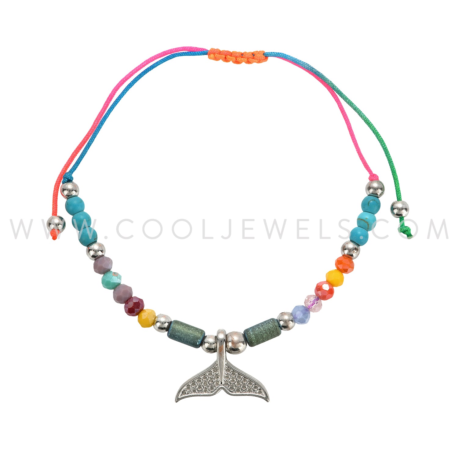String Anklet with Crystal and Stone Beads, Whale Tail Pendant.