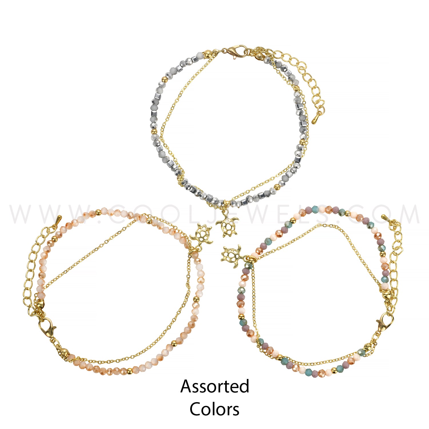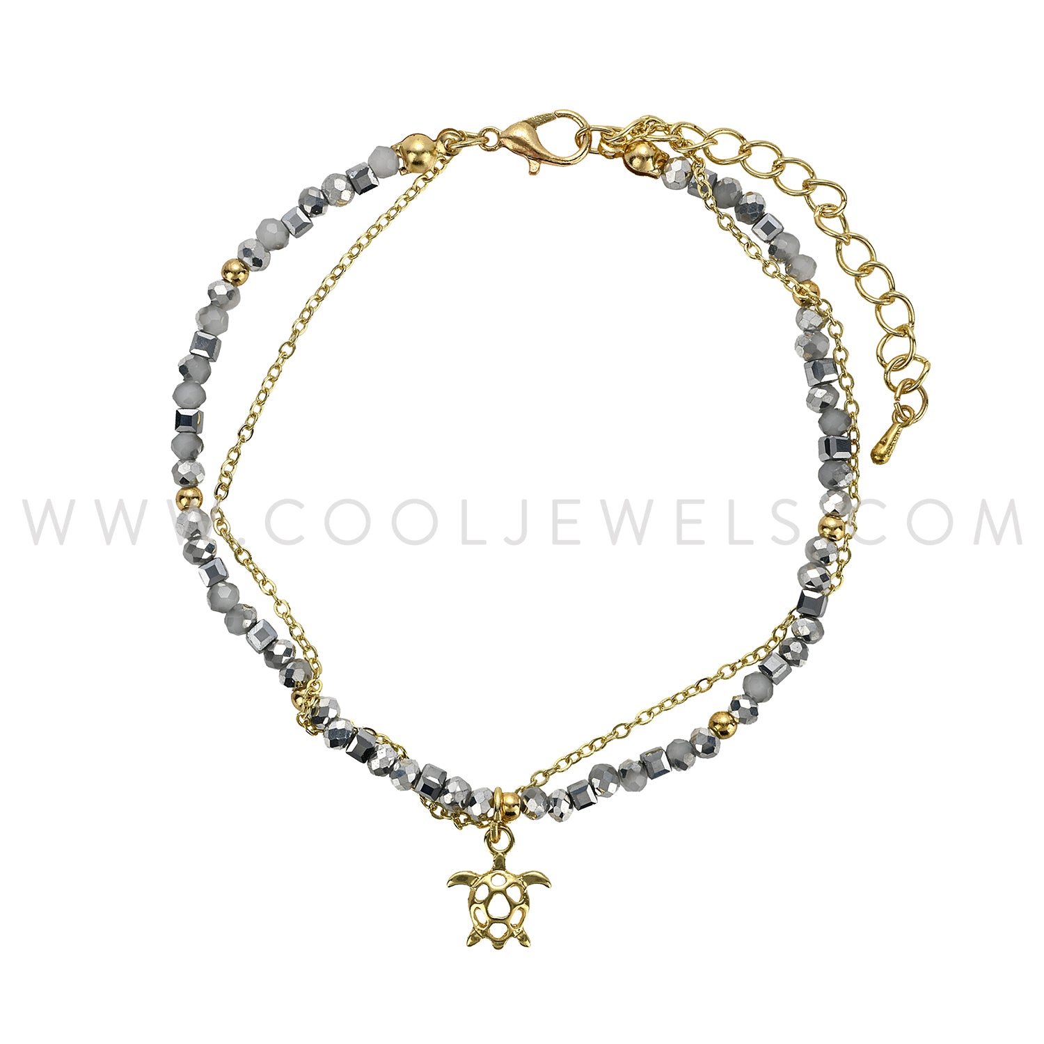 DOUBLE ANKLET WITH BEADS & TURTLE PENDANT