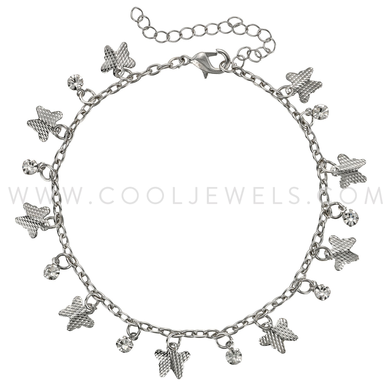 SILVER LINK CHAIN ANKLET WITH BUTTERFLIES