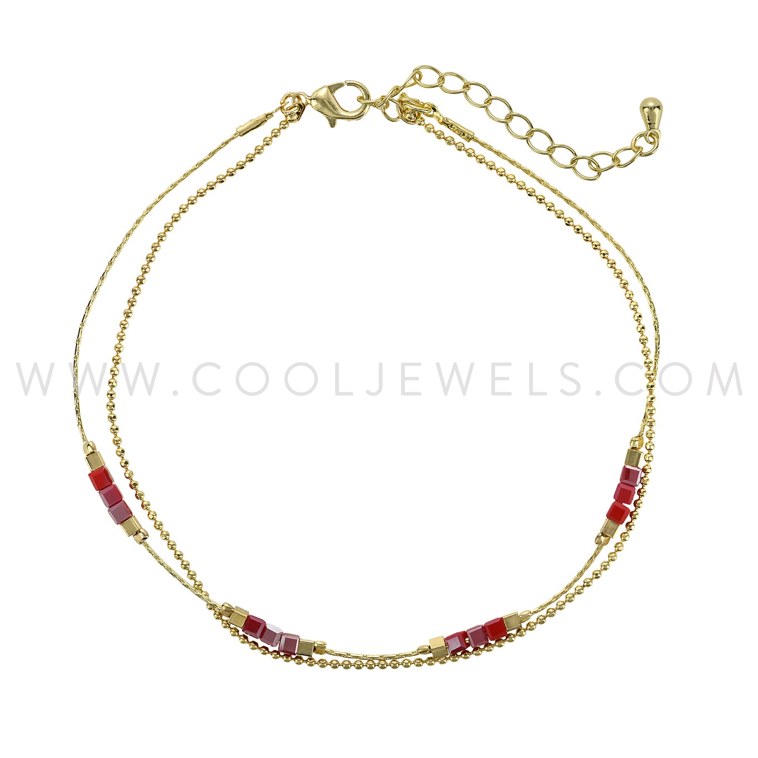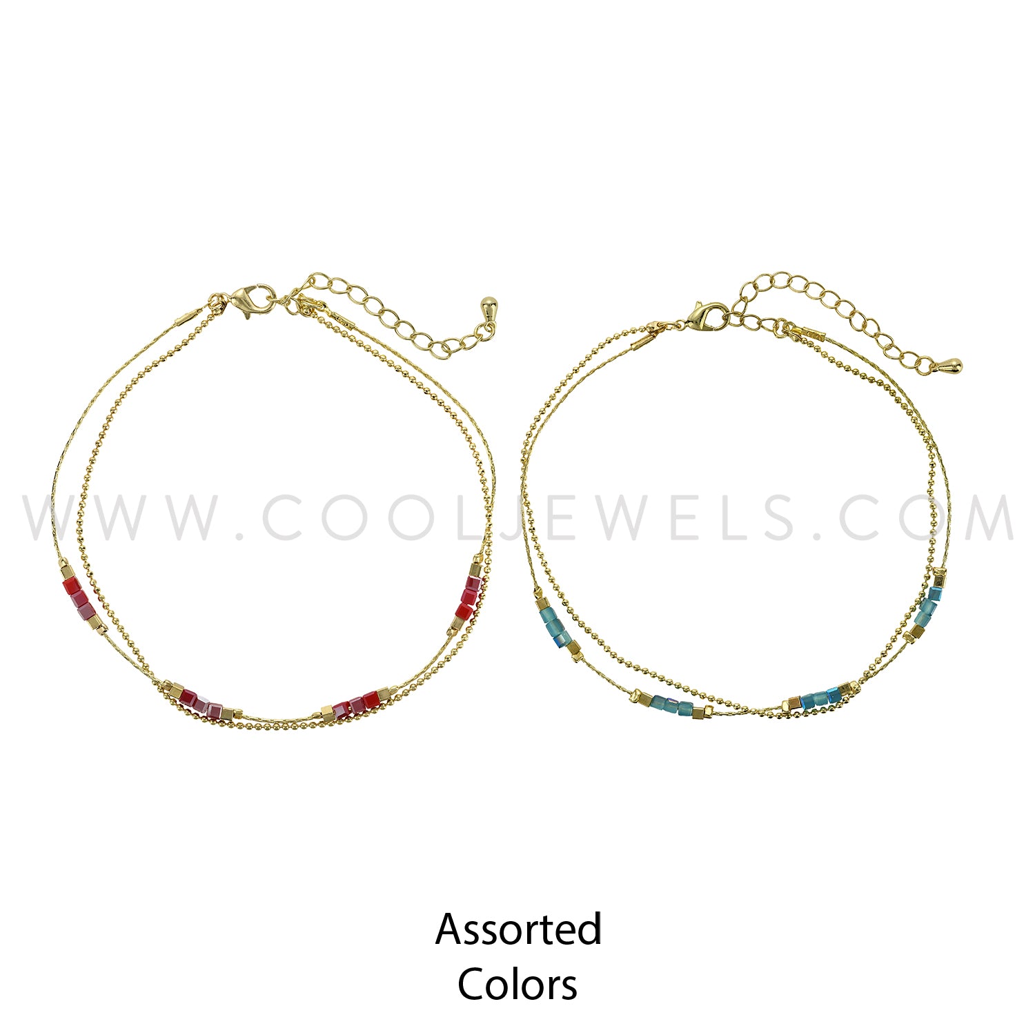 LAYERED GOLD ANKLET WITH COLORED SQUARE BEADS