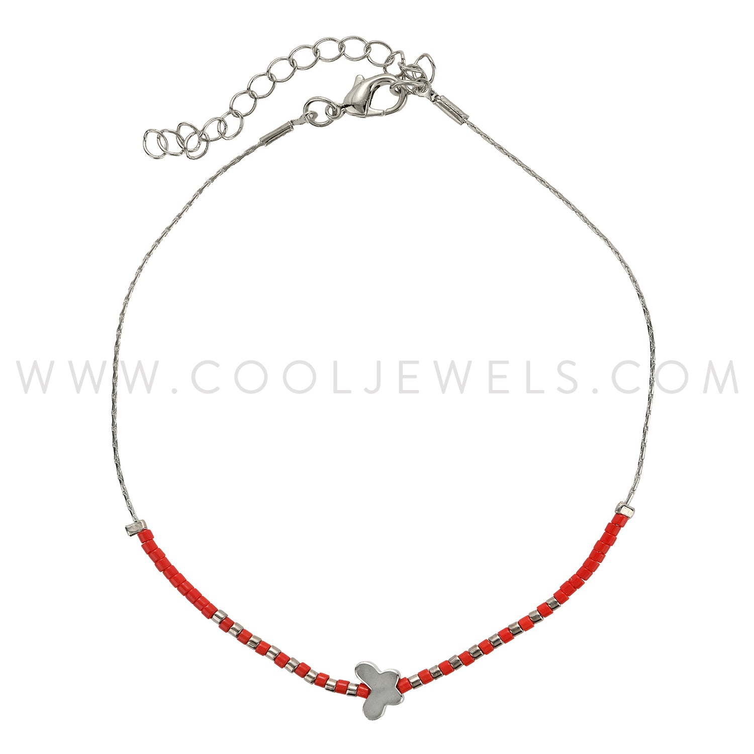 SILVER ANKLET WITH COLORED SEED BEADS & SILVER BUTTERFLY - ASSORTED