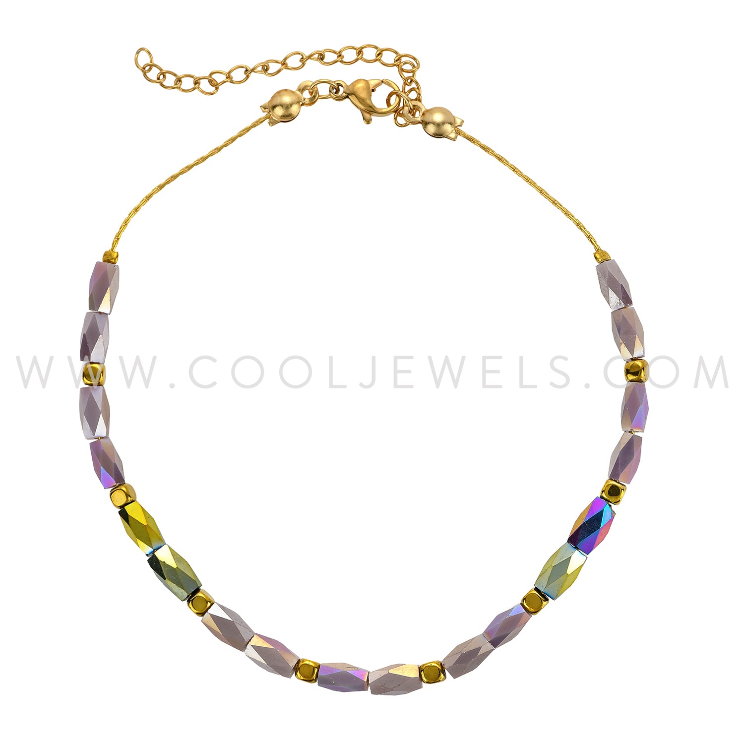 CHAIN ANKLET WITH COLORED SEED BEADS