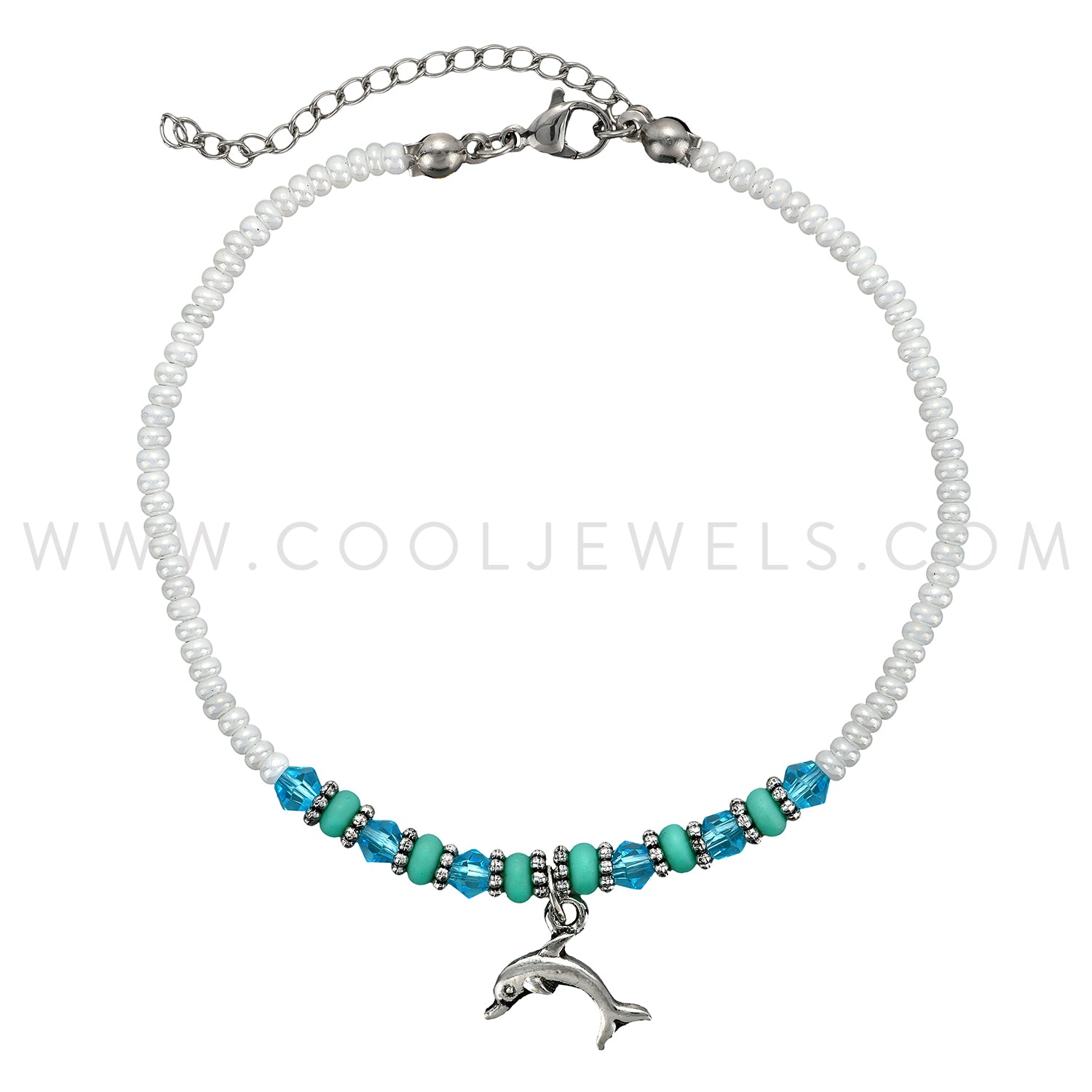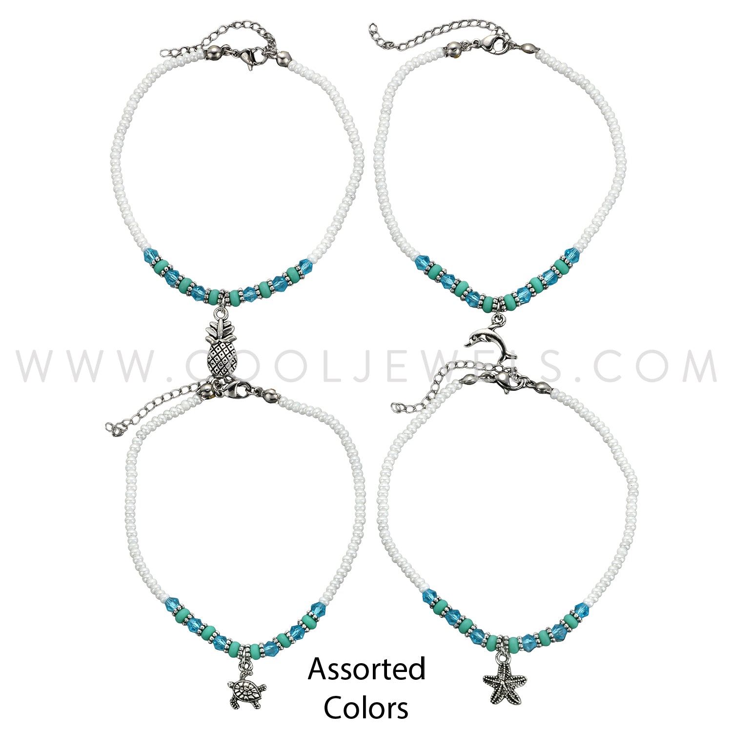 COLOR BEADED & CRYSTAL ANKLET WITH CHARM - ASSORTED