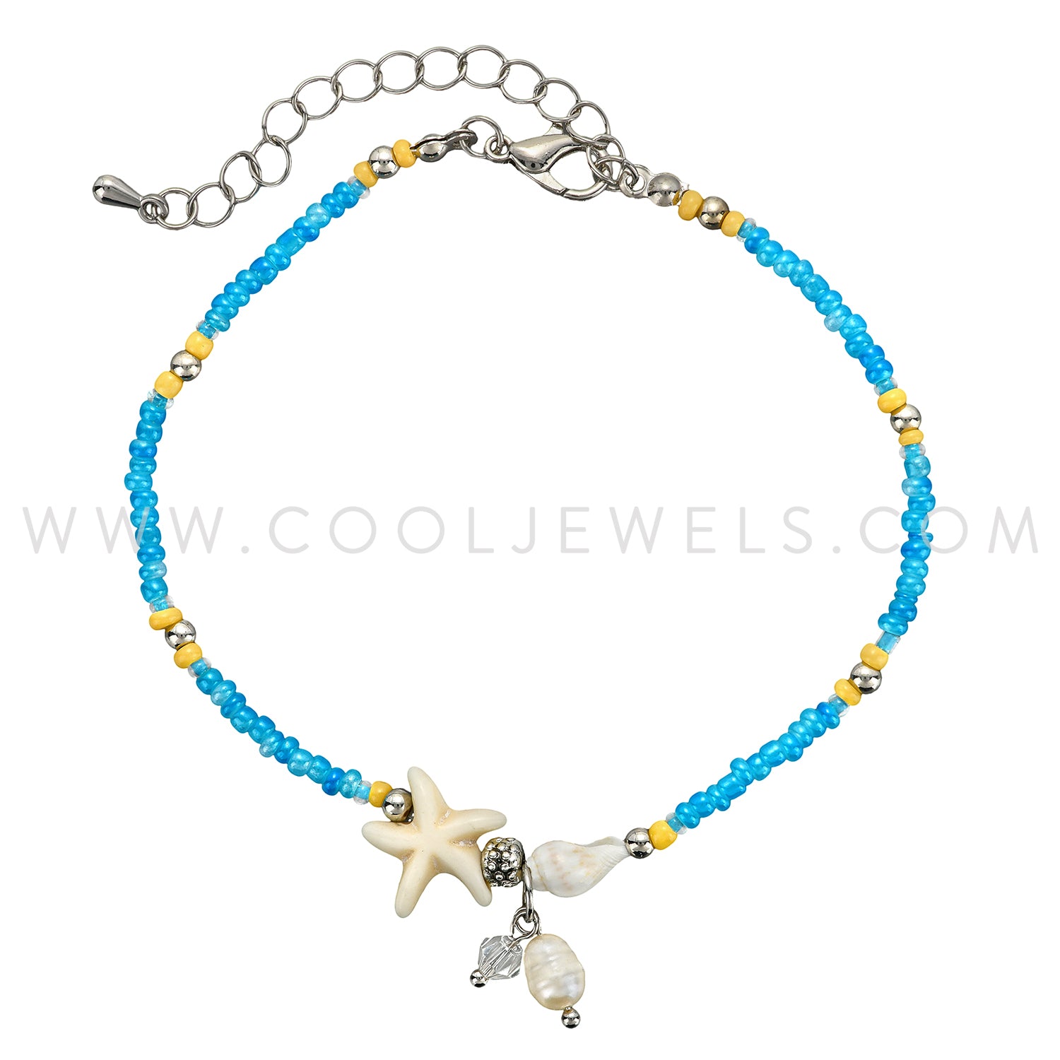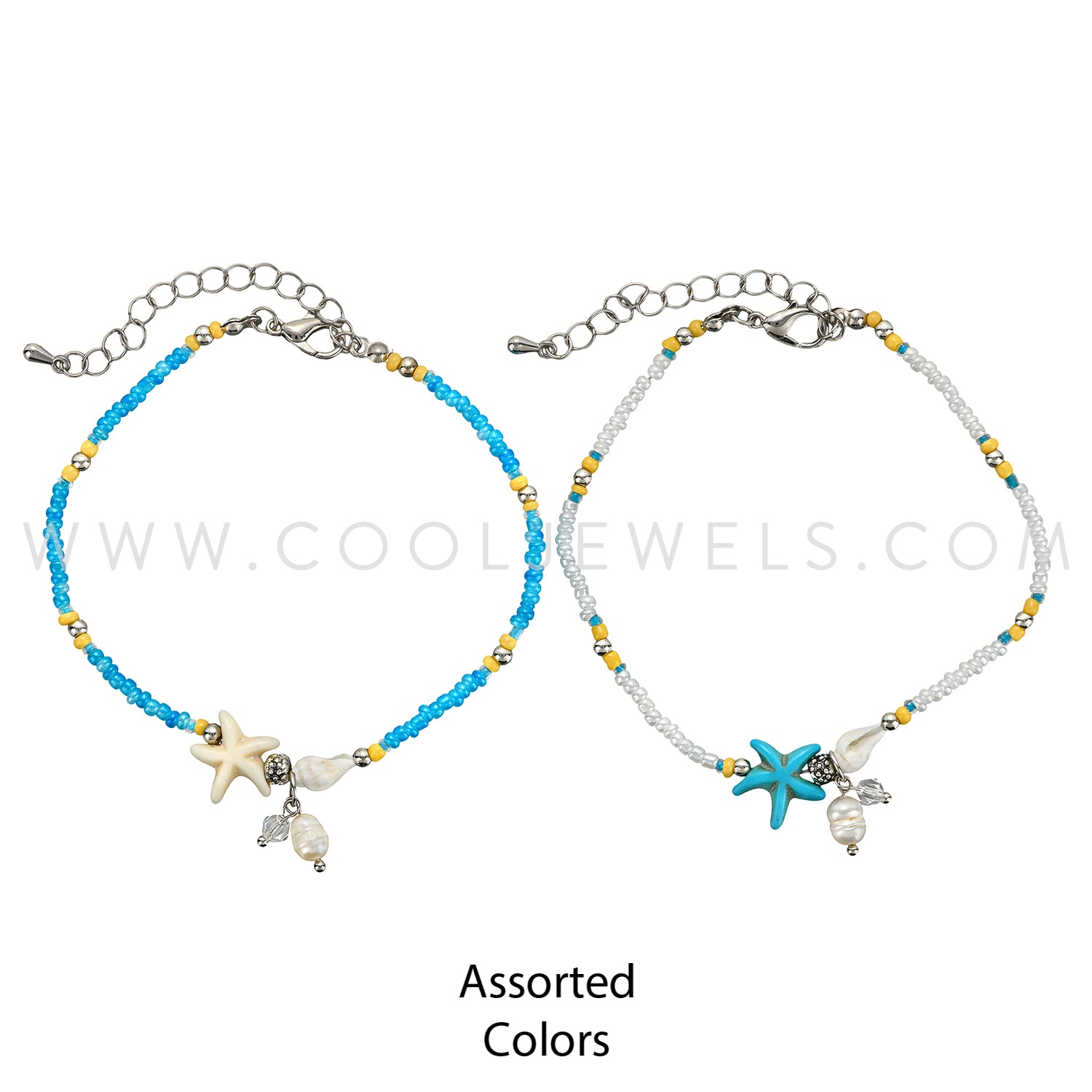 SEED BEAD ANKLET WITH STARFISH & SHELL - ASSORTED