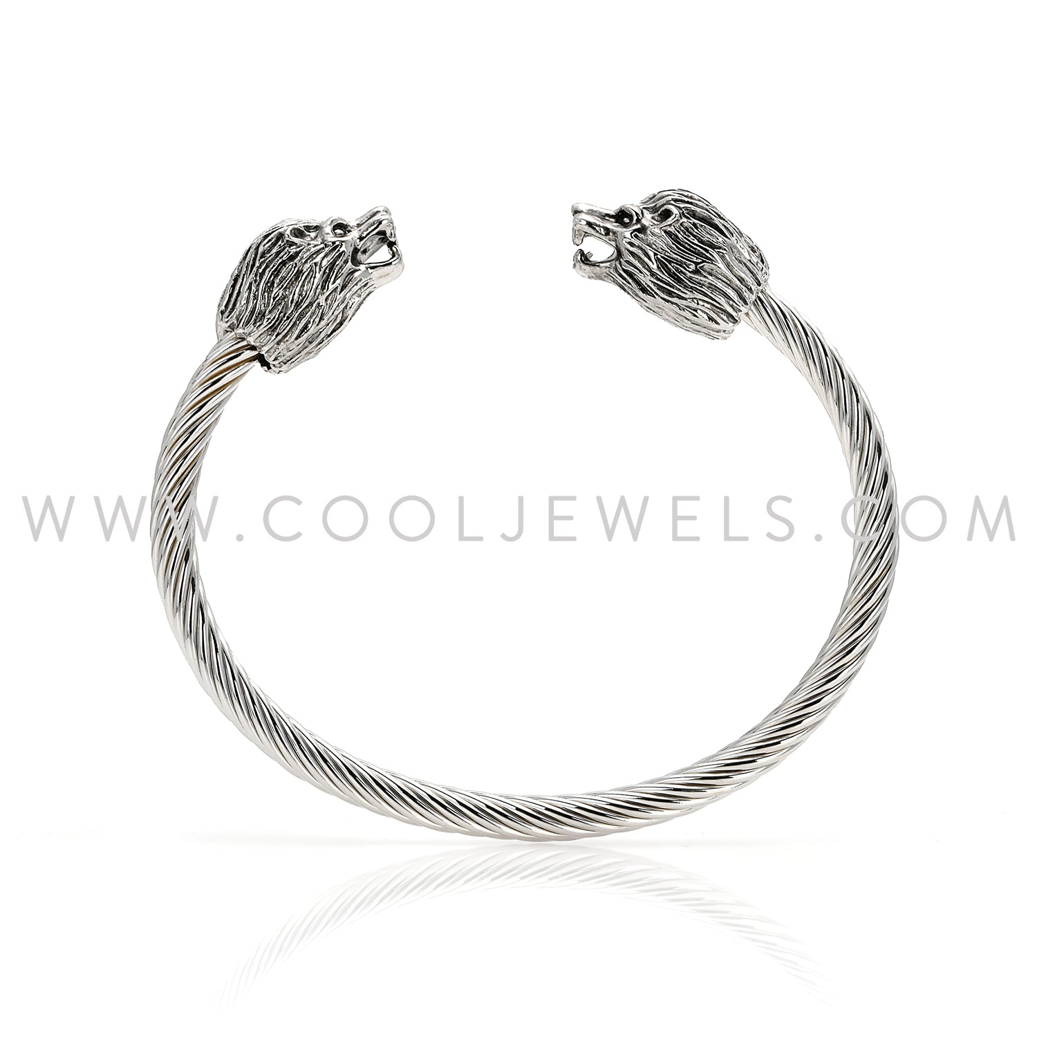 TWISTED CABLE WIRE BRACELET WITH LION HEADS