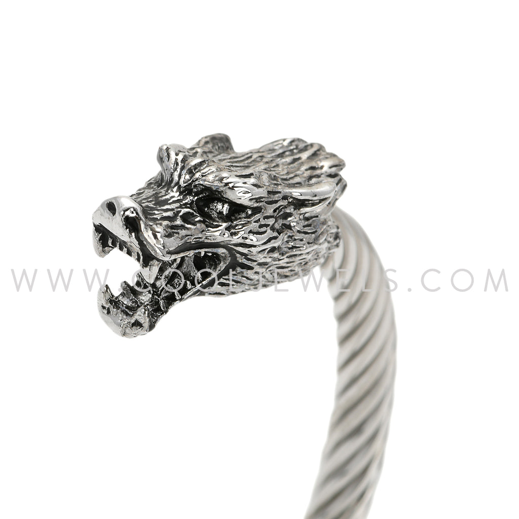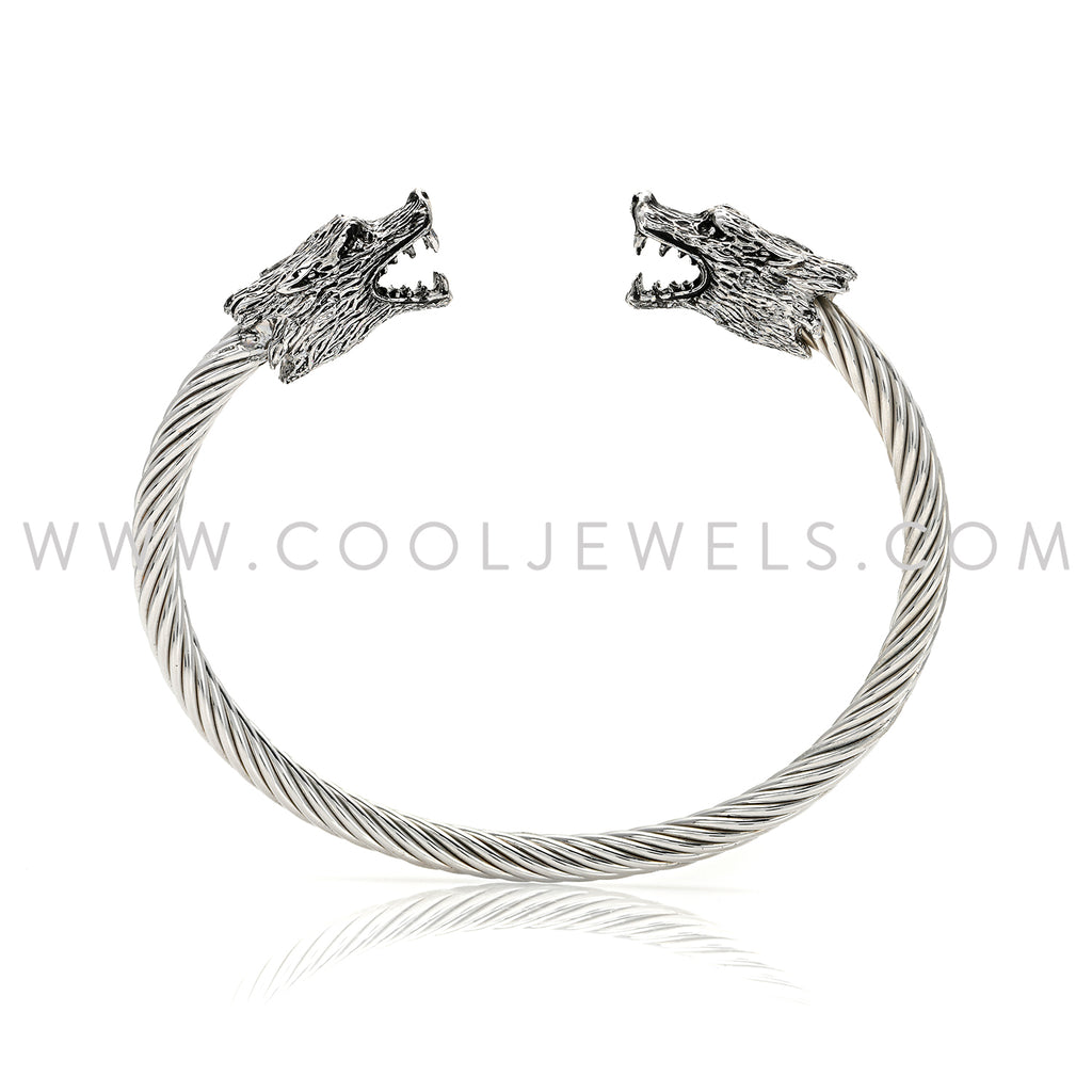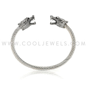 TWISTED CABLE WIRE BRACELET WITH WOLF HEADS