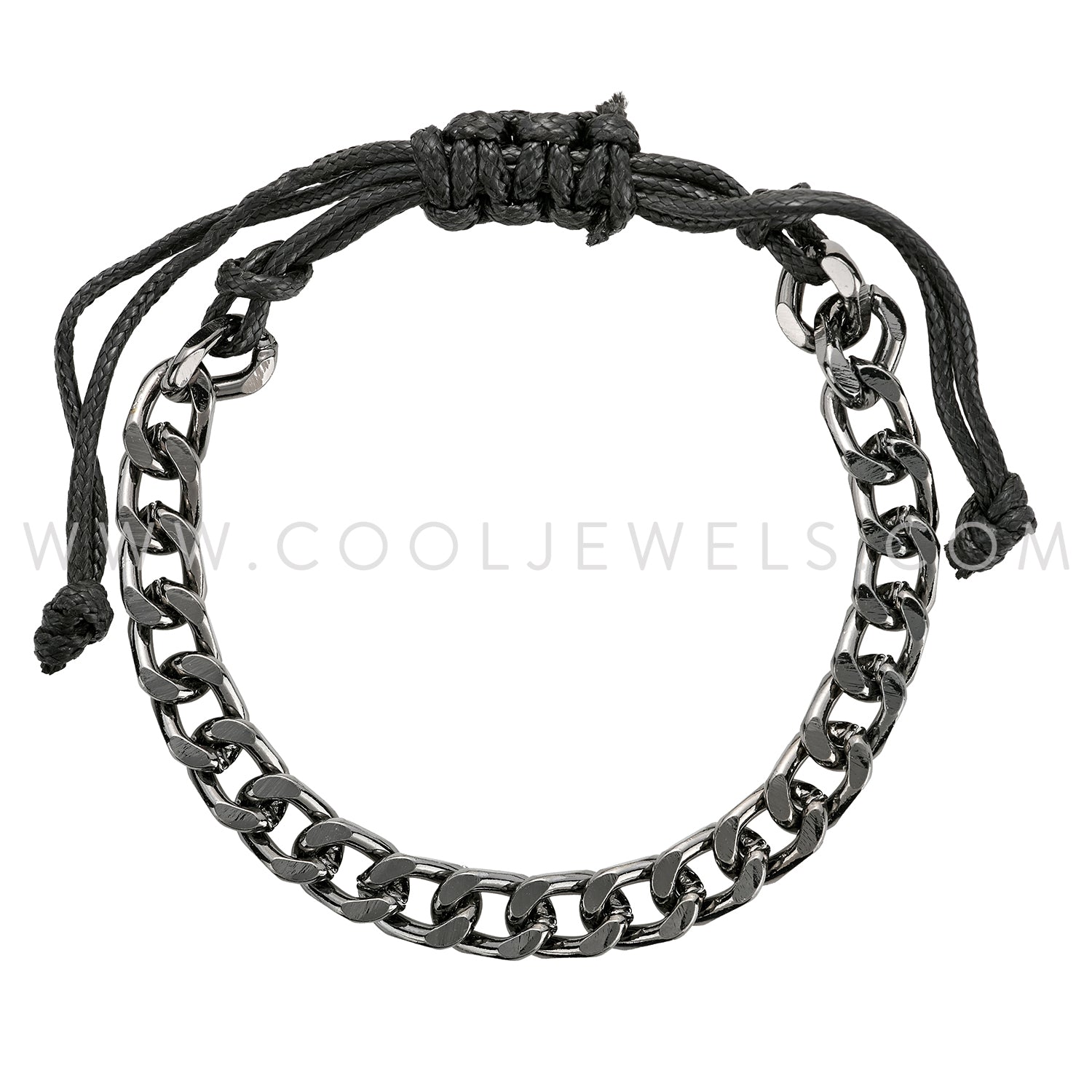 Black Slider Cord Bracelet with Silver