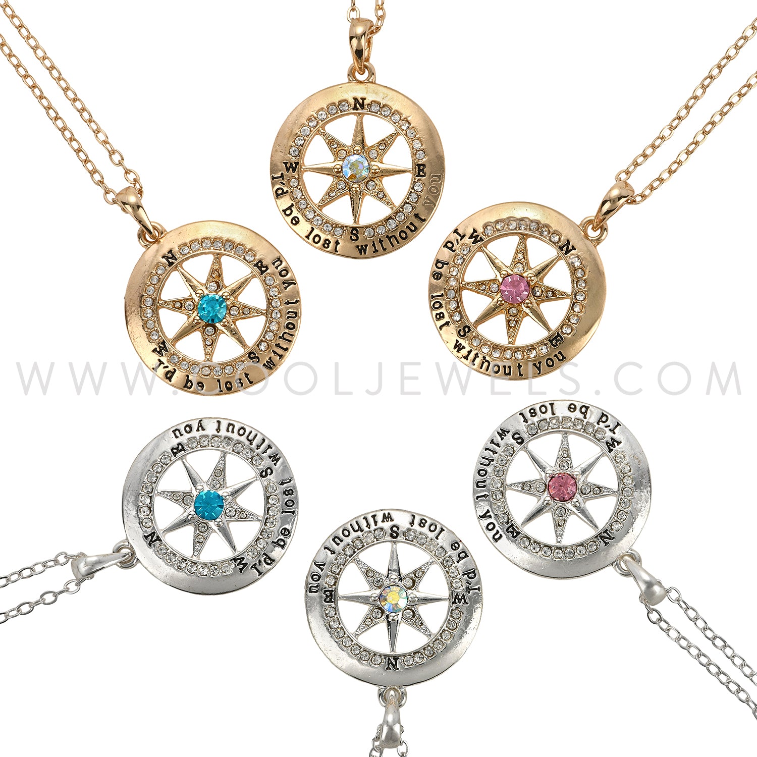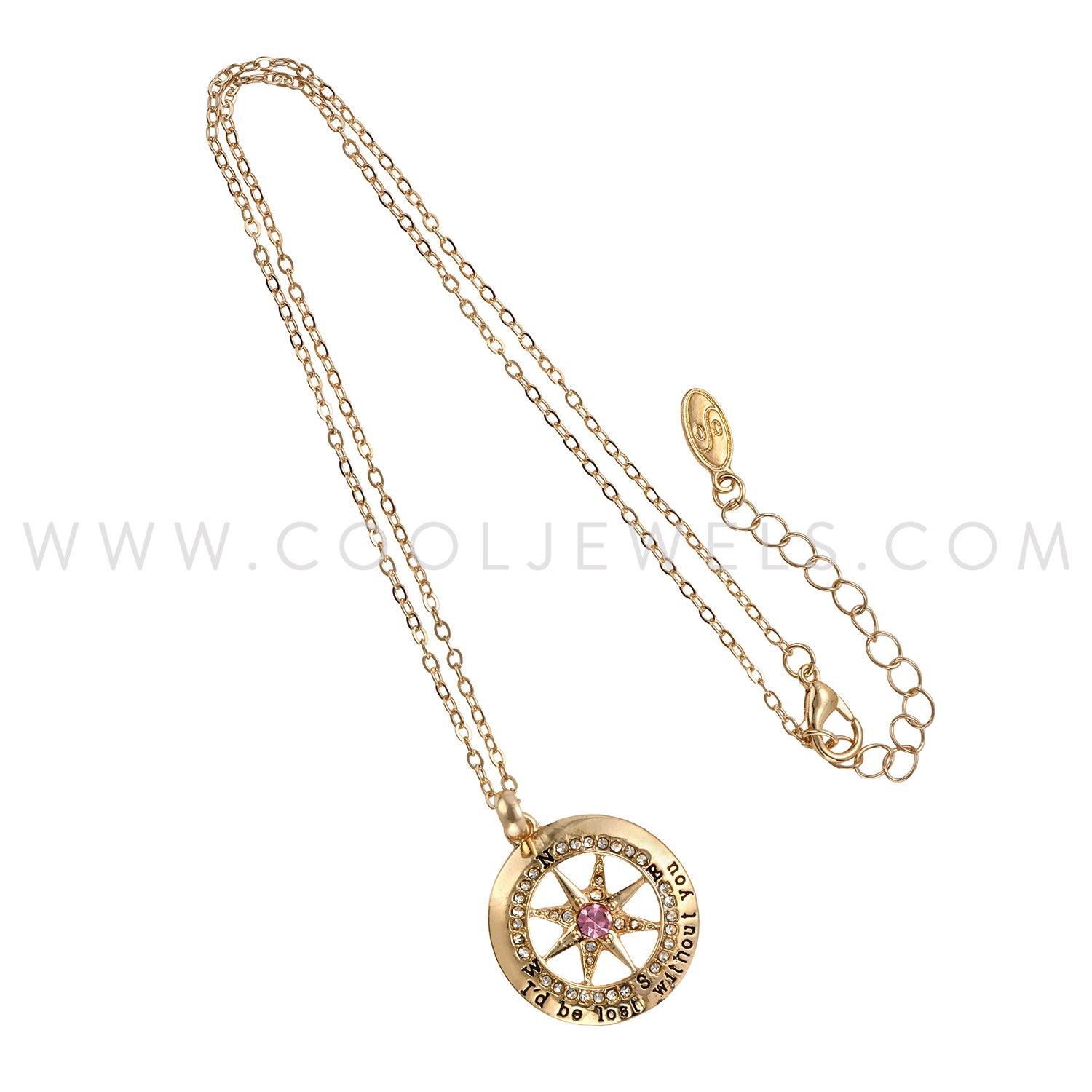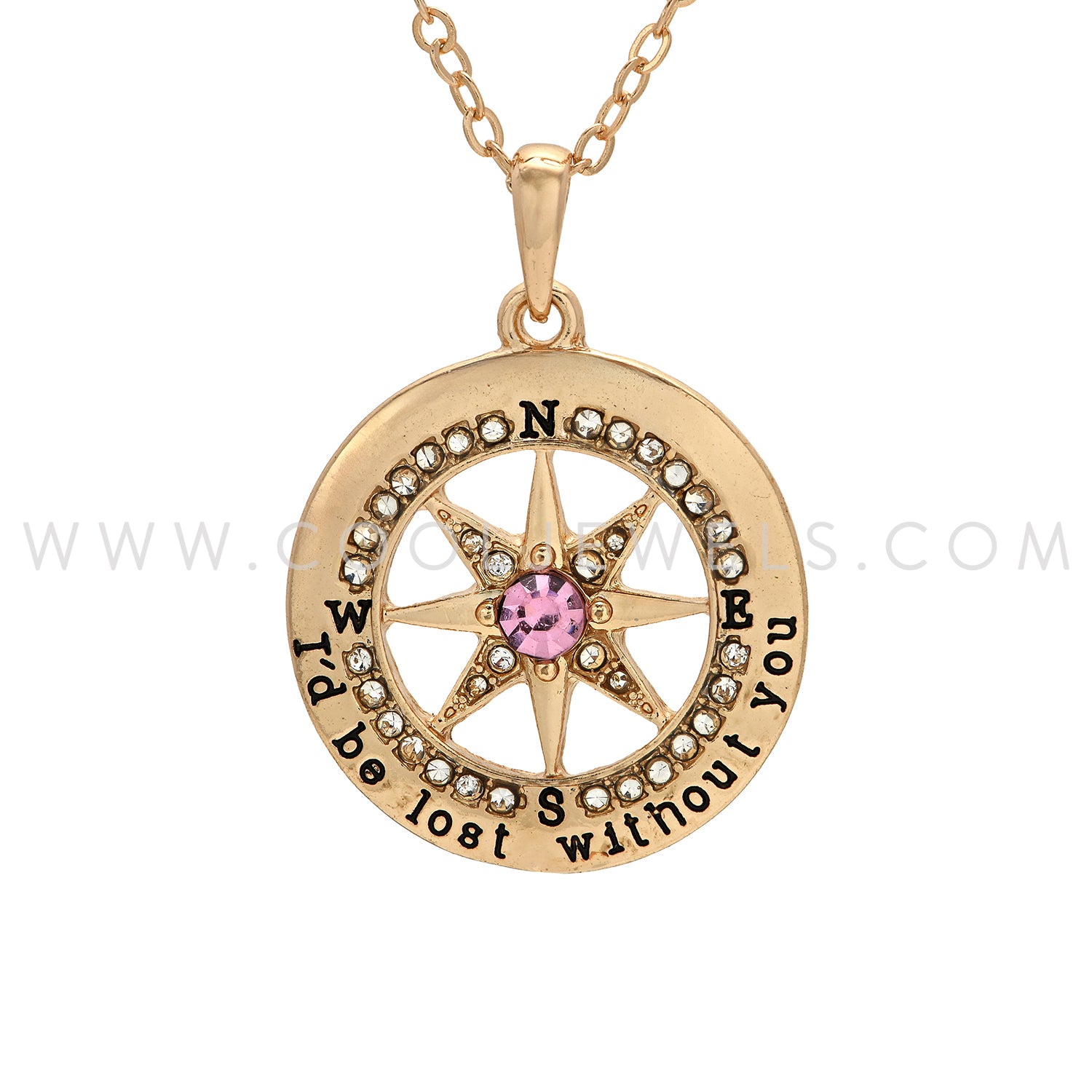 LINK CHAIN NECKLACE WITH COMPASS PENDANT WITH RHINESTONE - ASSORTED