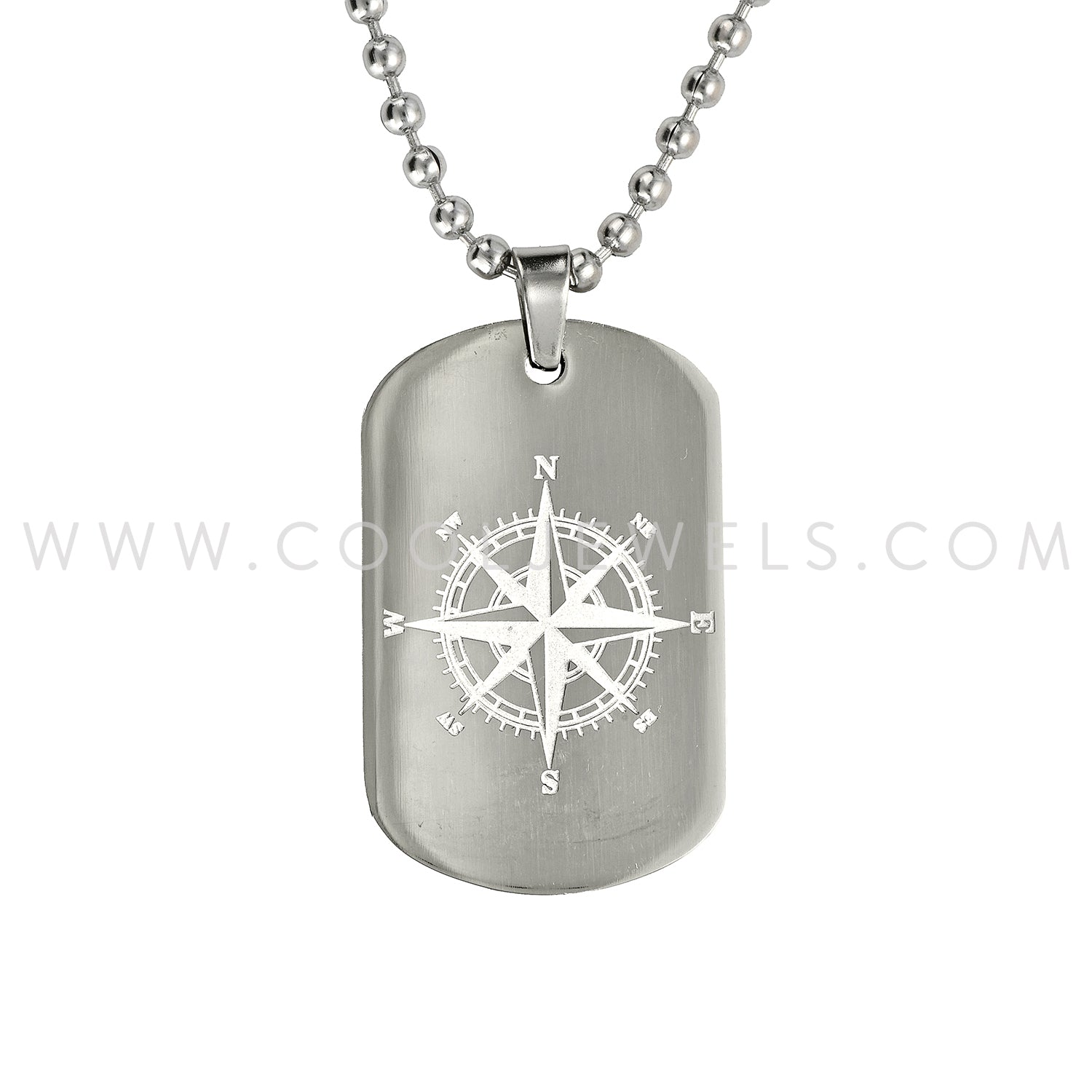 BALL CHAIN NECKLACE WITH STAINLESS STEEL COMPASS DOG TAG PENDANT