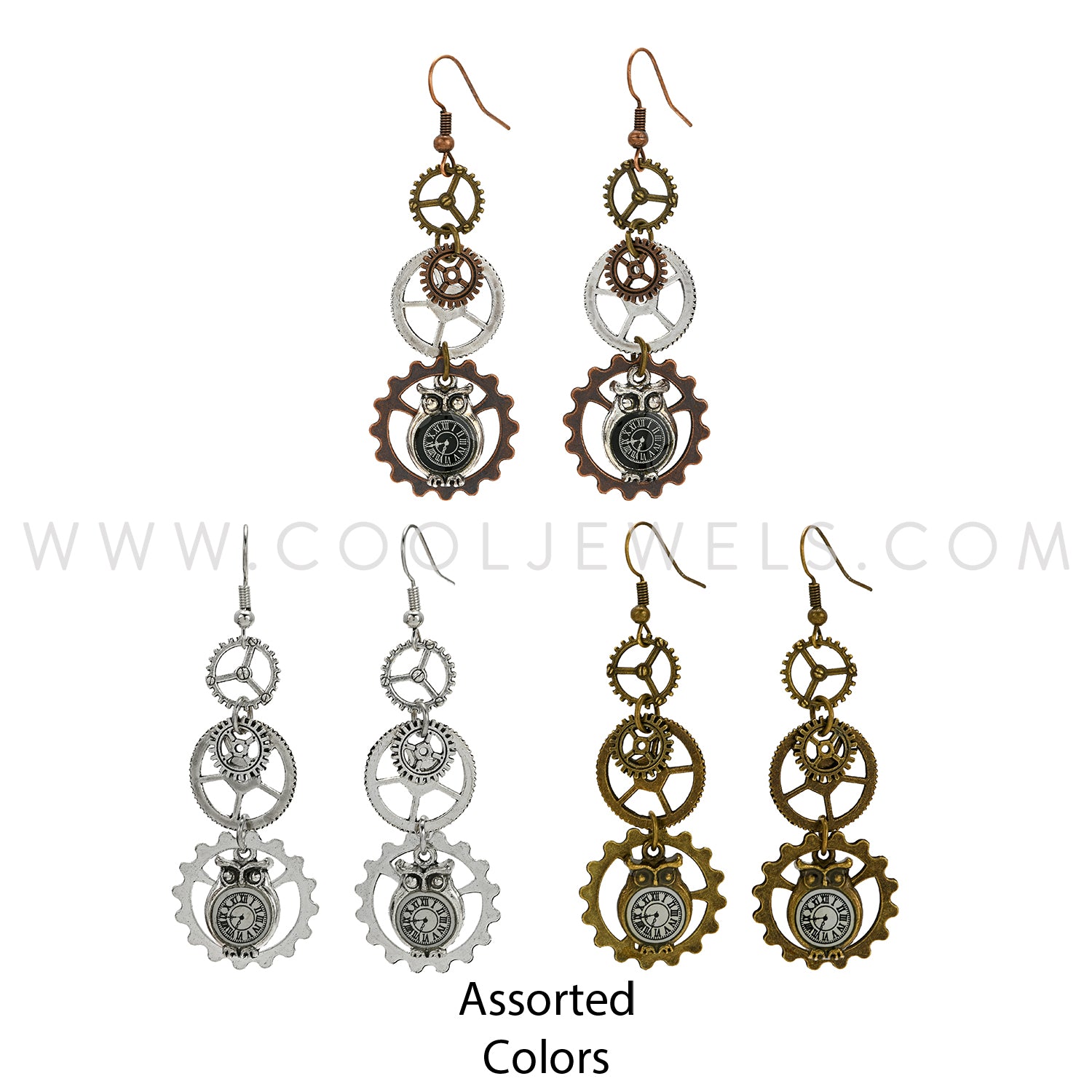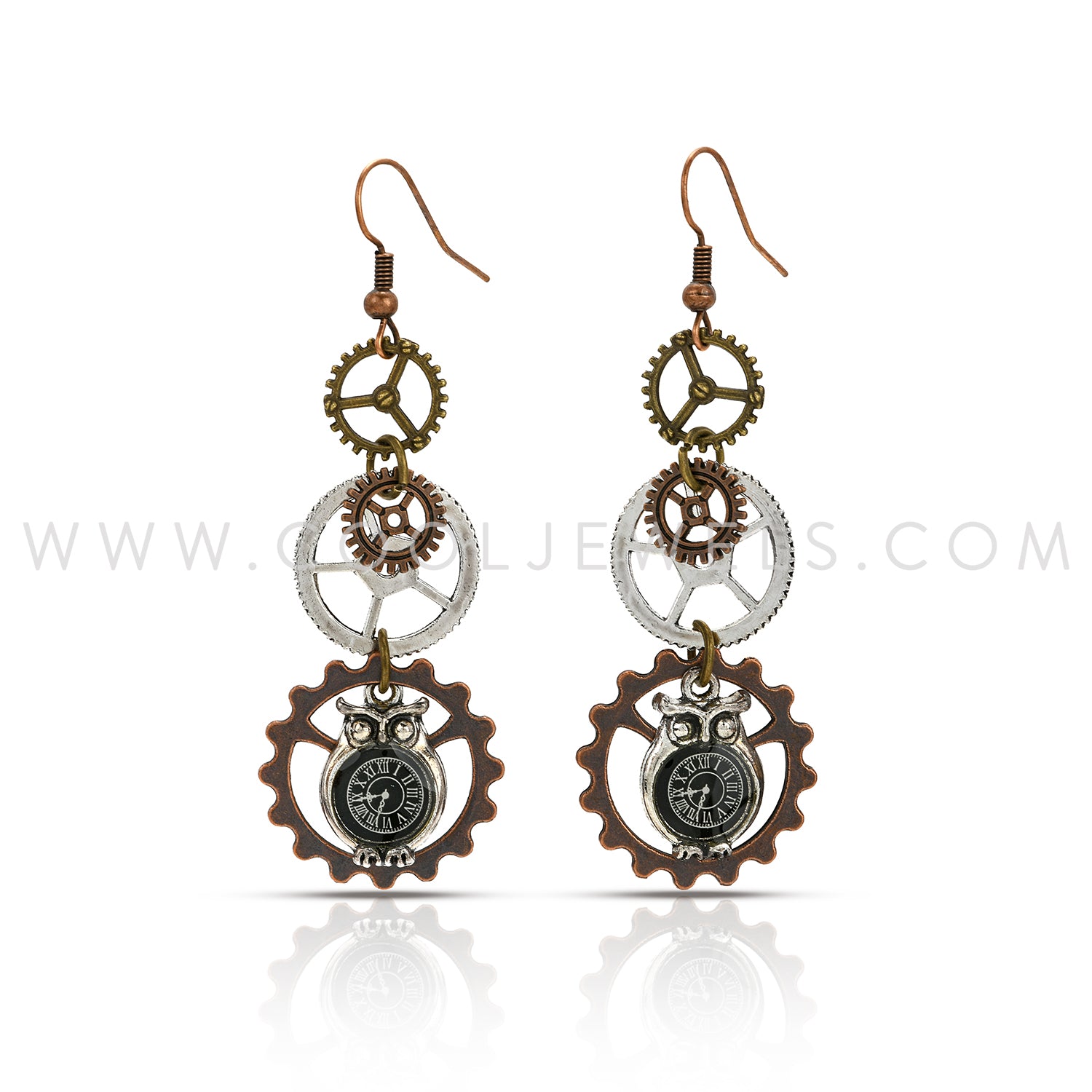 FISH HOOK STEAMPUNK EARRINGS WITH OWLS