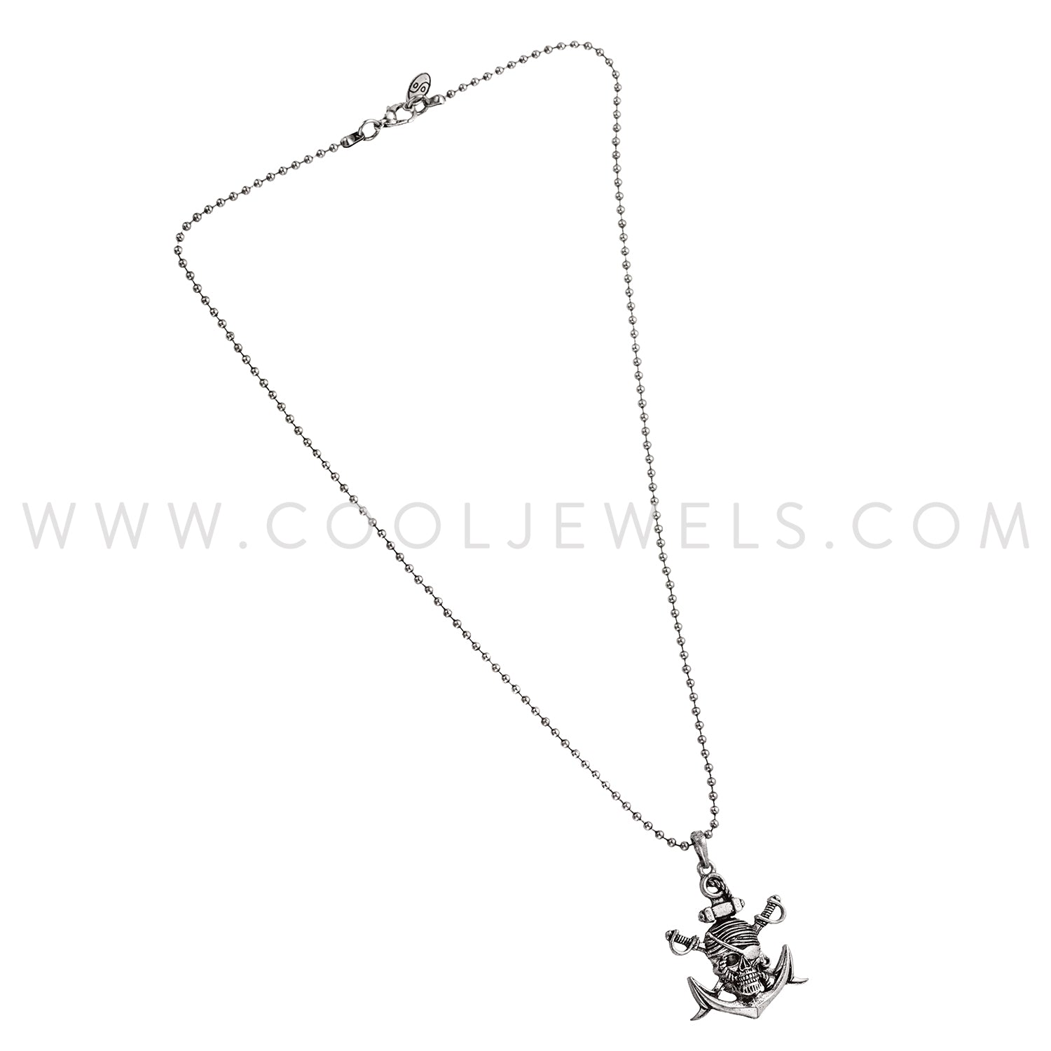 BALL CHAIN NECKLACE WITH PIRATE SKULL & ANCHOR PENDANT