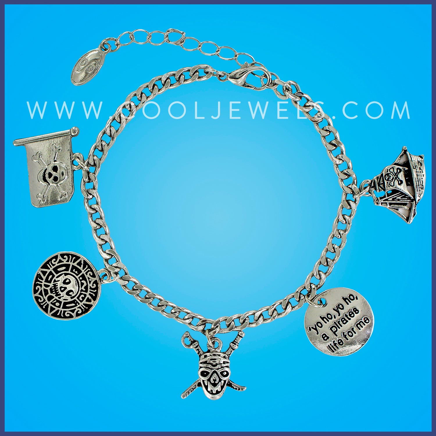 LINK CHAIN BRACELETS WITH PIRATE THEMED CHARMS
