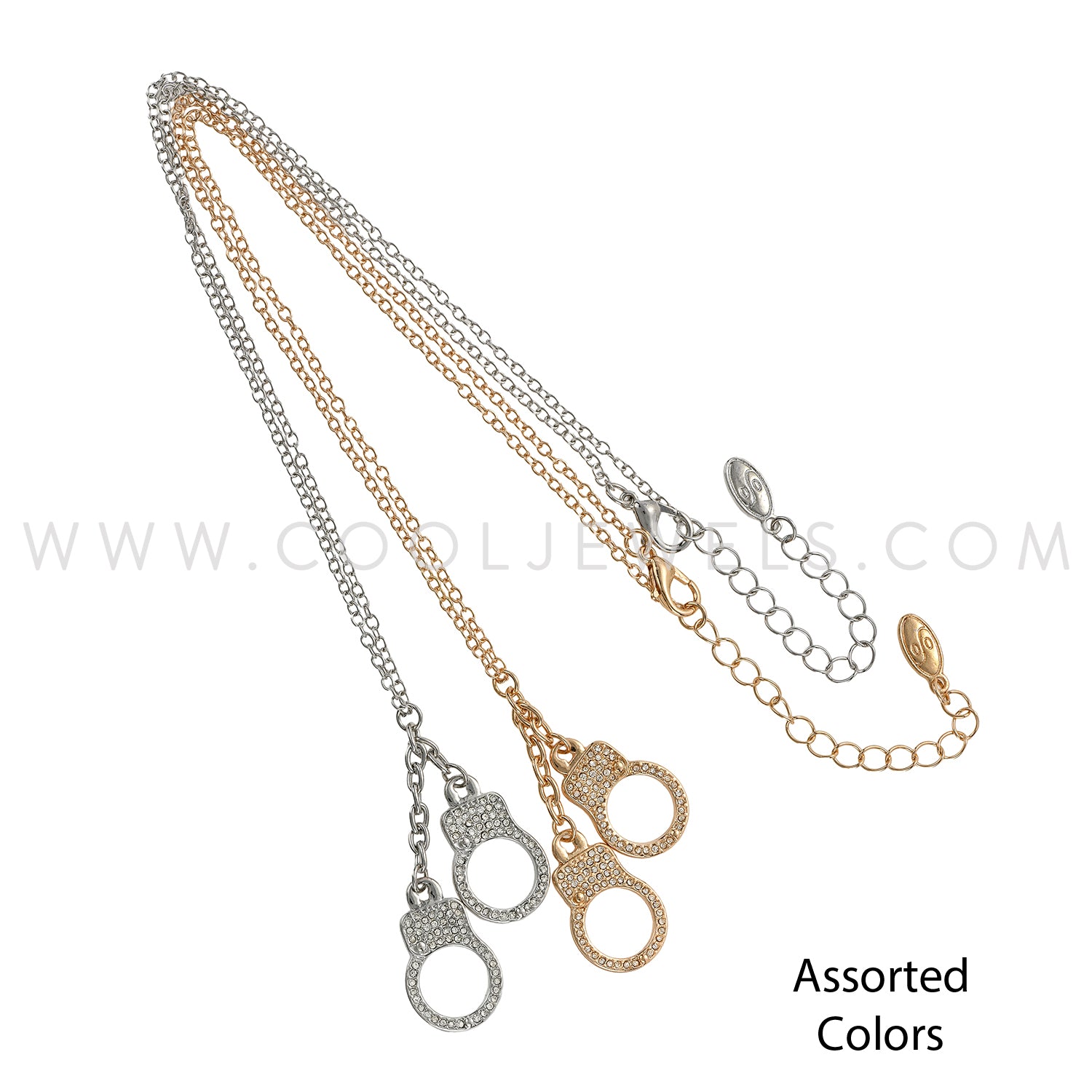 LINK CHAIN NECKLACE WITH RHINESTONE HANDCUFF PENDANTS - ASSORTMENT