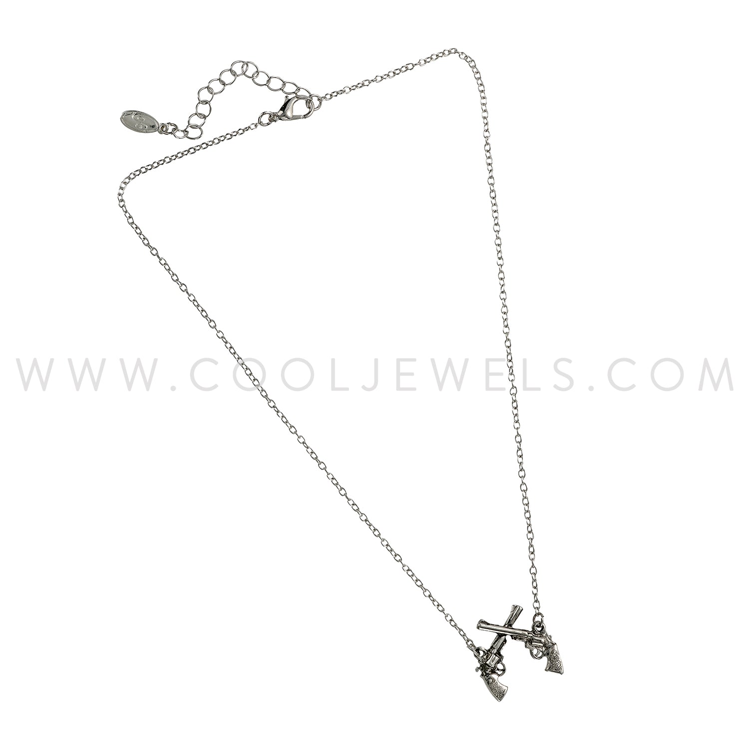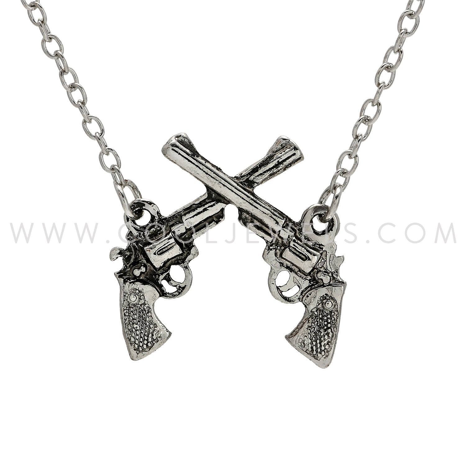 LINK CHAIN NECKLACE WITH DOUBLE GUN PENDANT