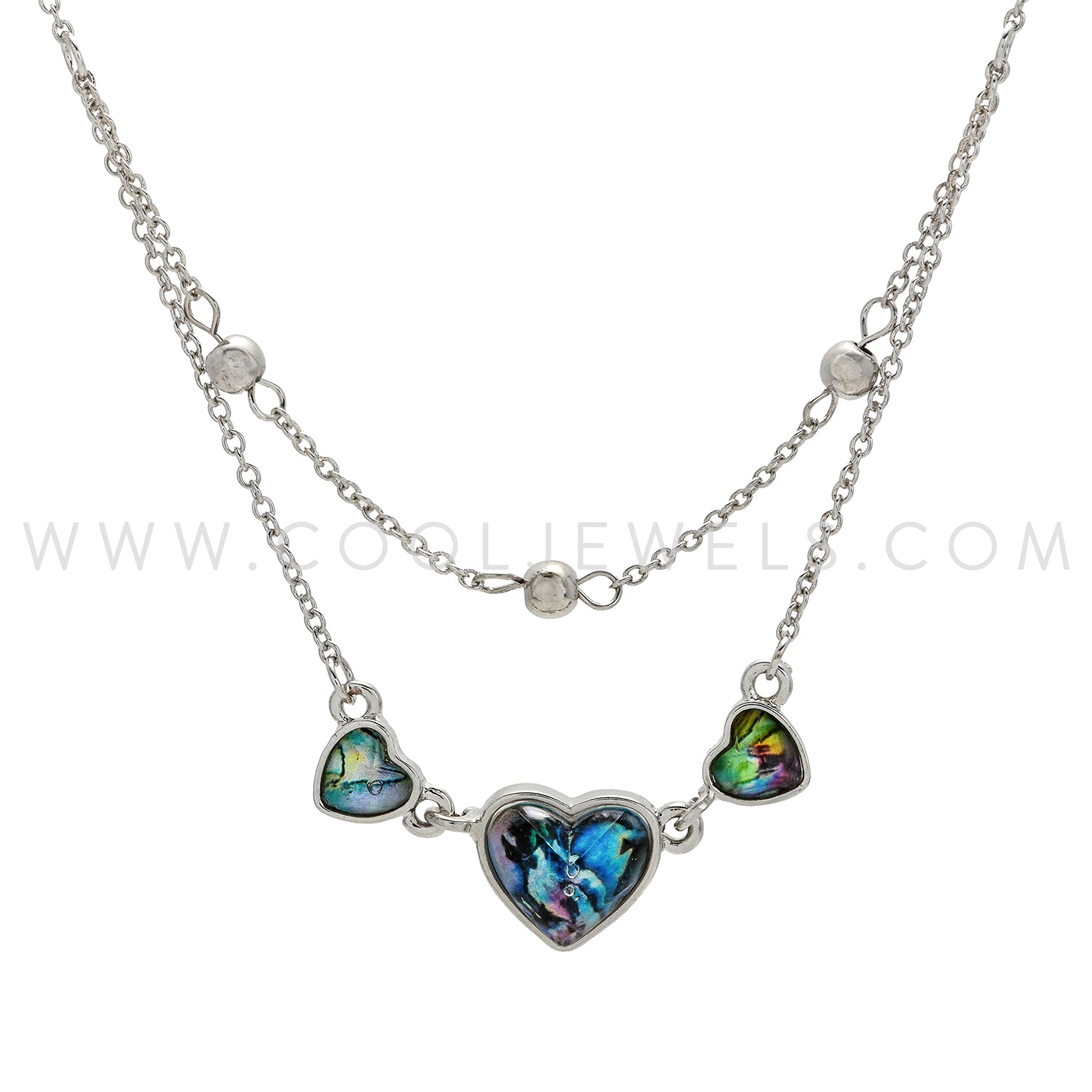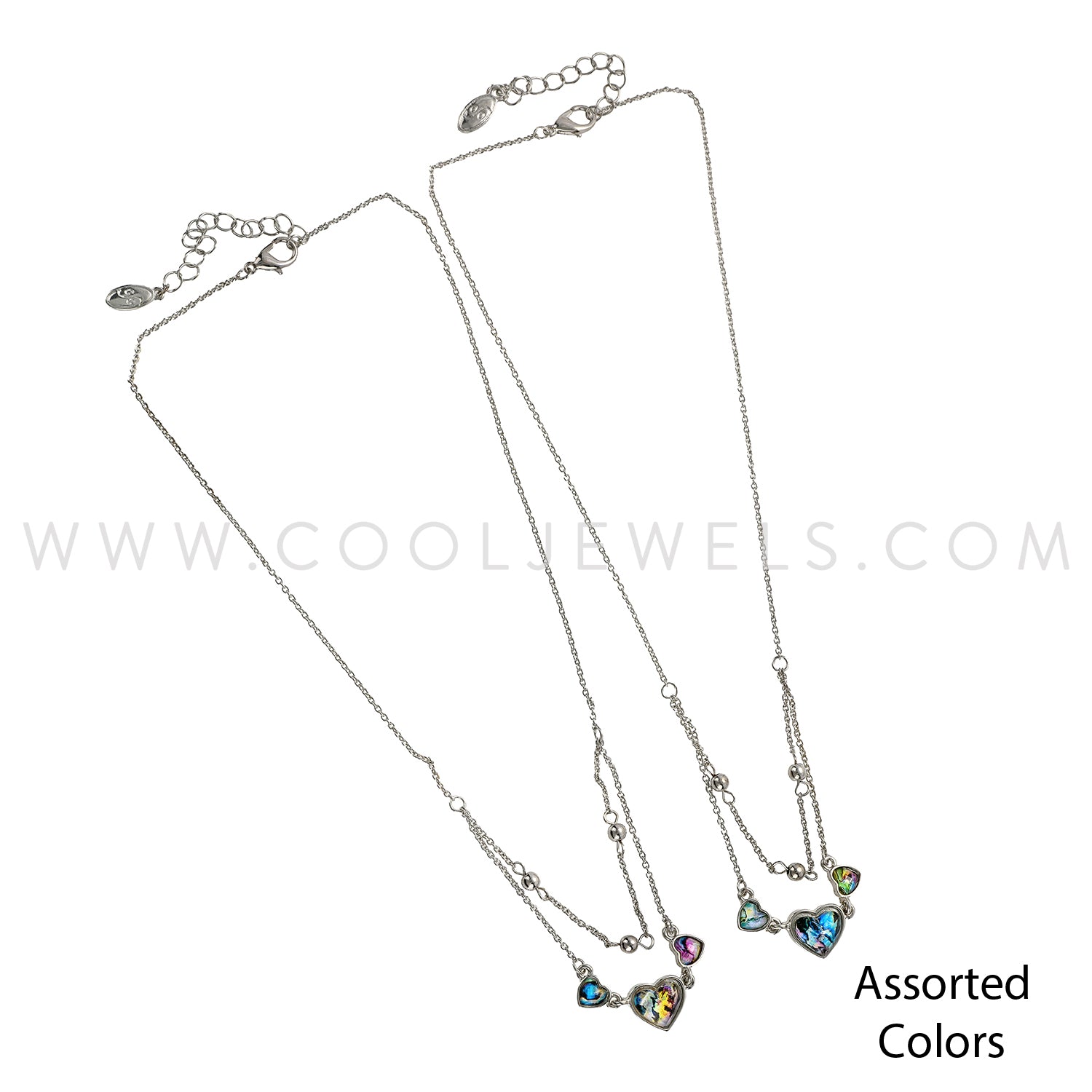 DOUBLE LAYERED CHAIN NECKLACE WITH FACETED HEART PENDANTS