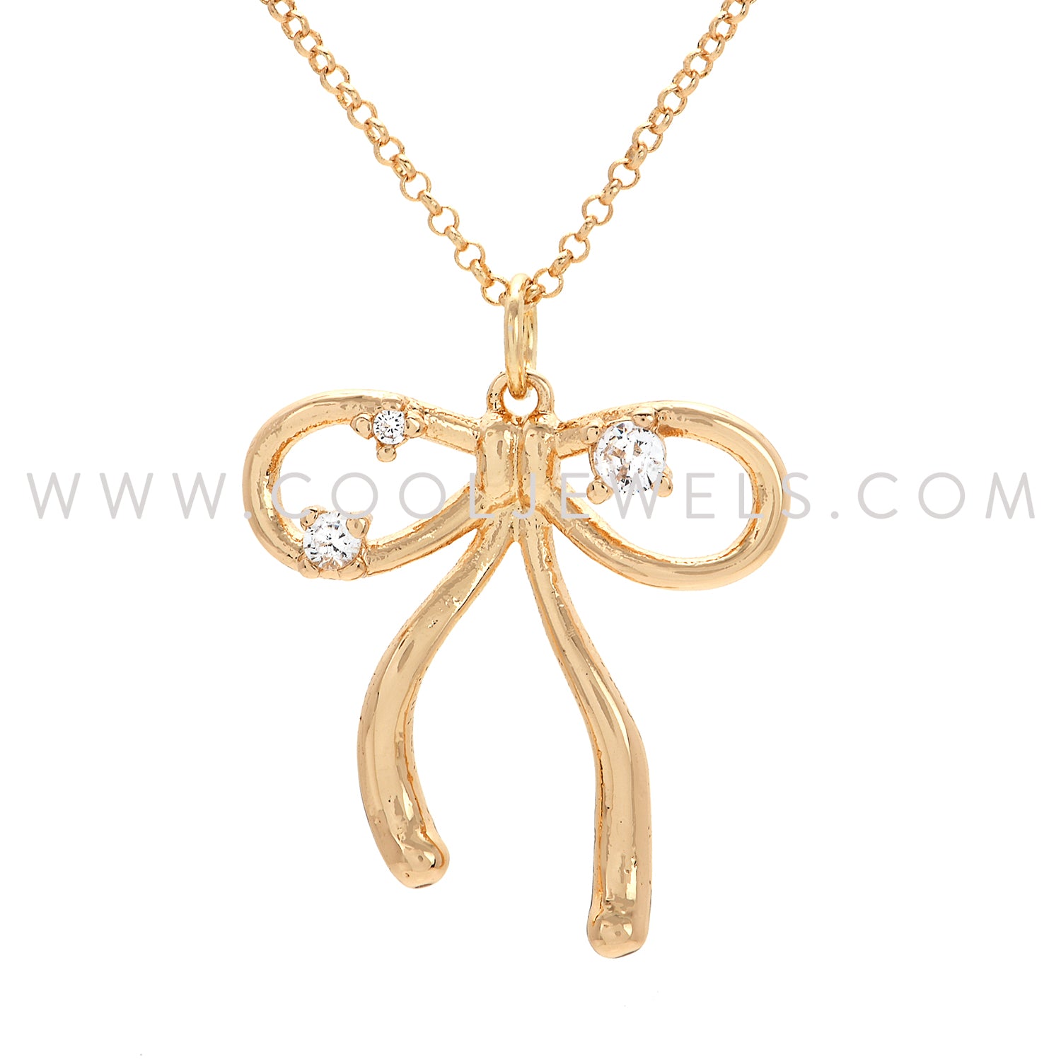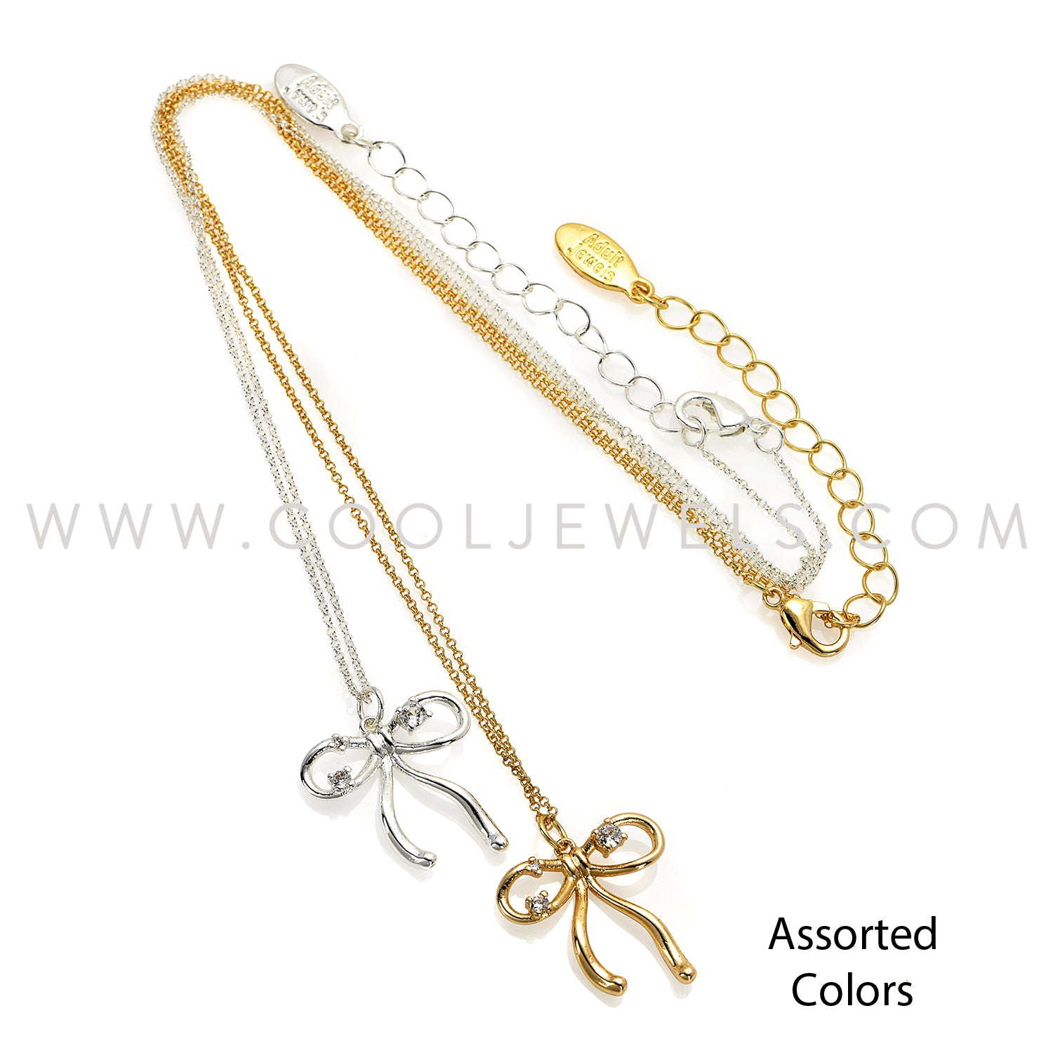 LINK CHAIN NECKLACE WITH RHINESTONE BOW - ASSORTED