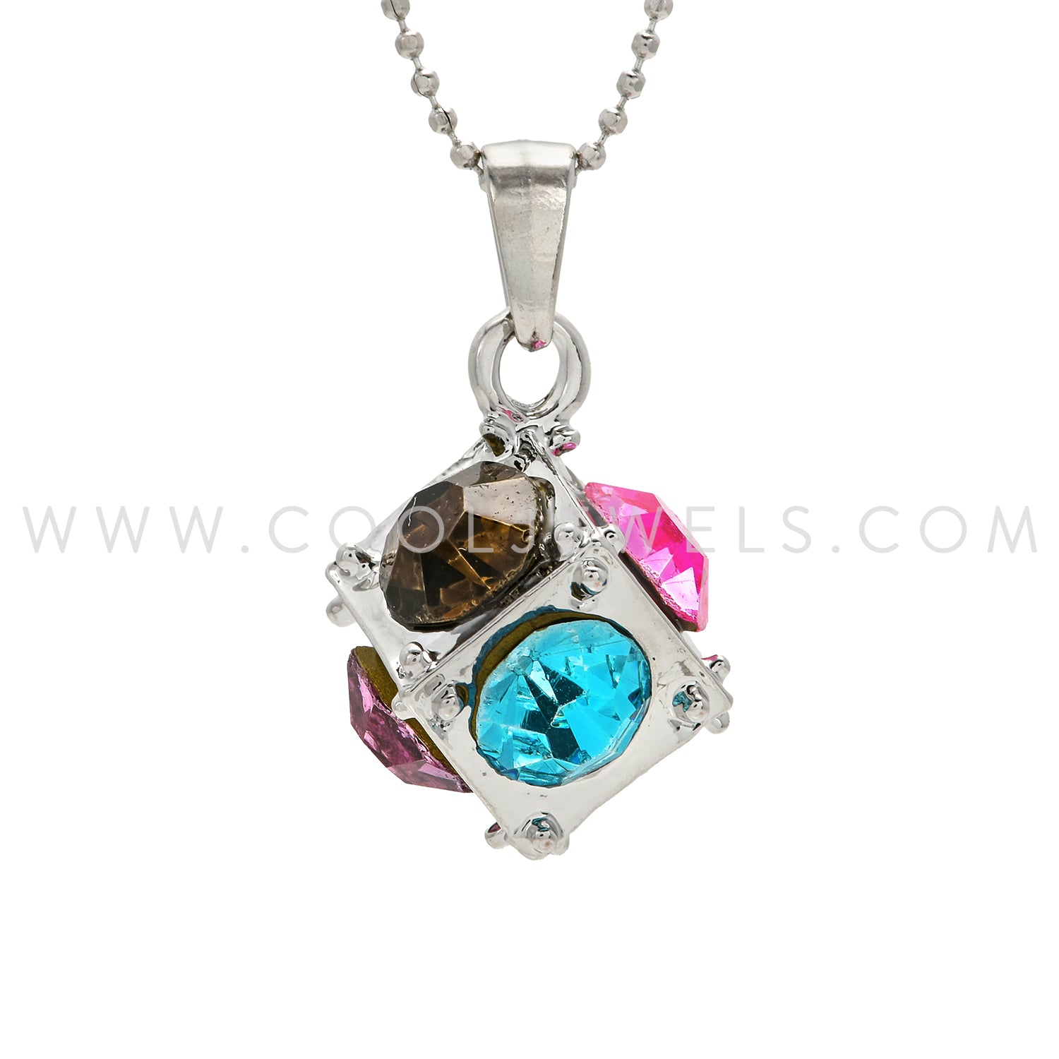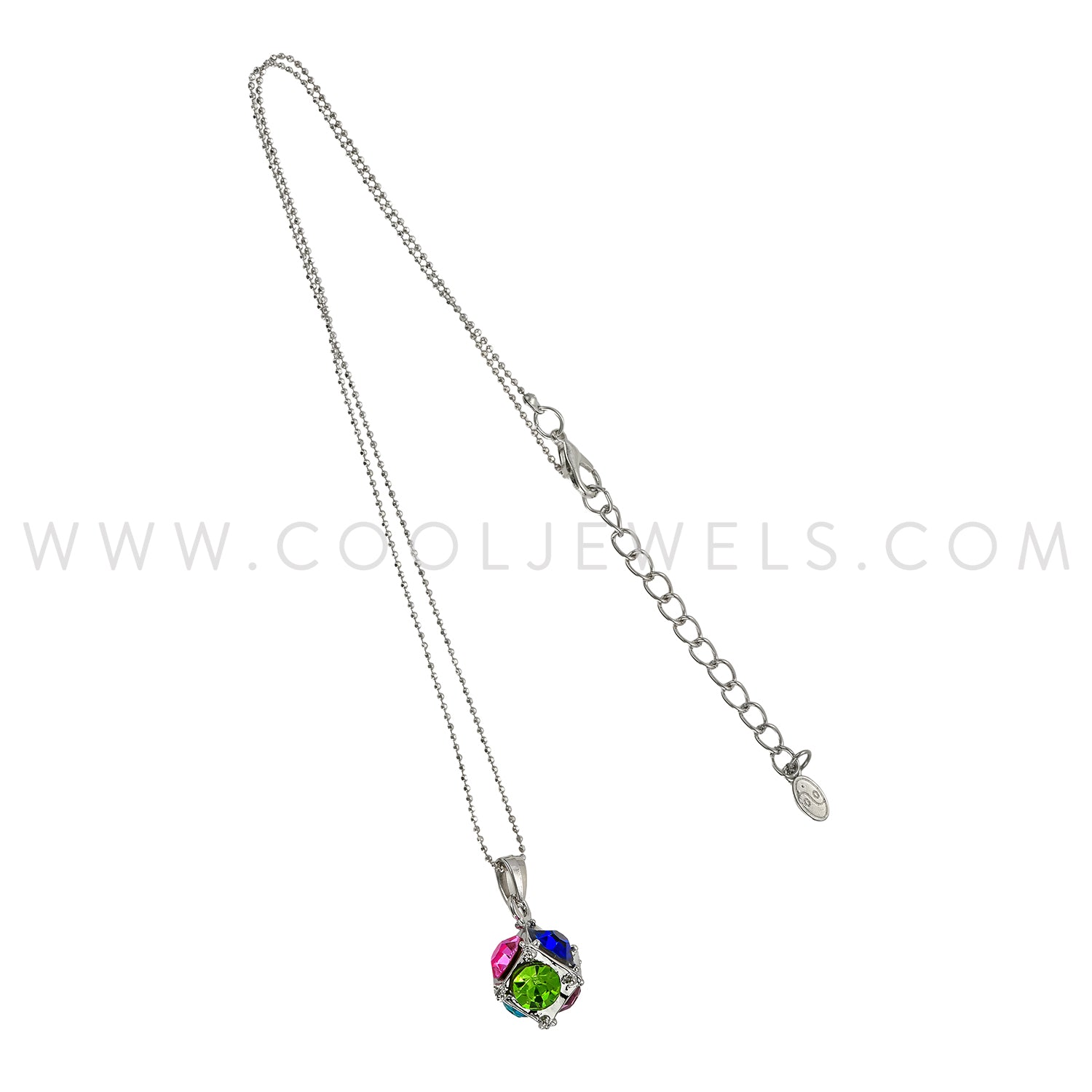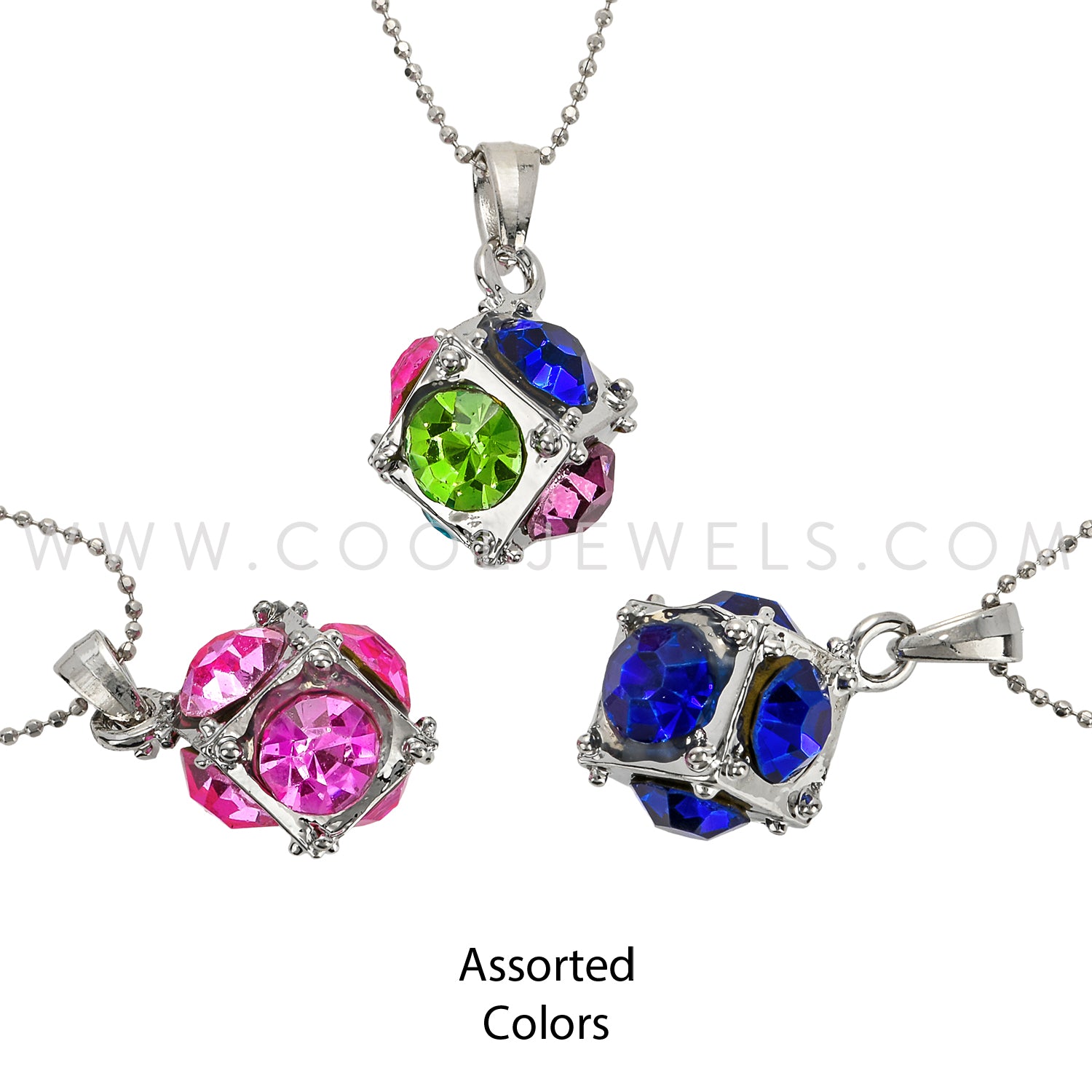 These Assorted Colored Rhinestone Pendant Necklace feature a silver ball chain with an assorted colored rhinestones accented with a silver accented pendant.