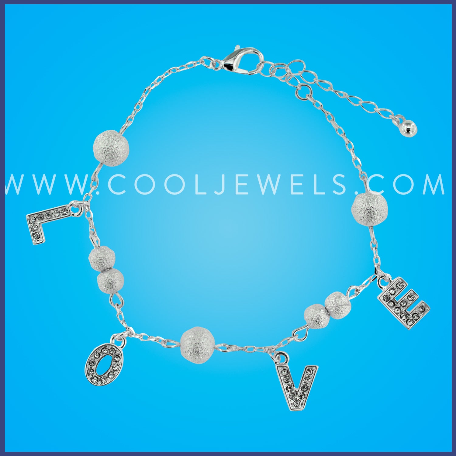 SILVER CHAIN BRACELET WITH RHINESTONE L-O-V-E PENDANTS