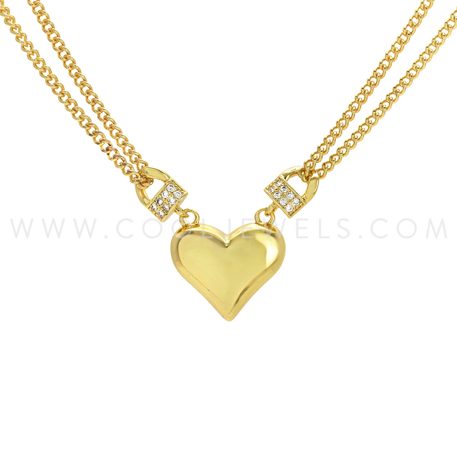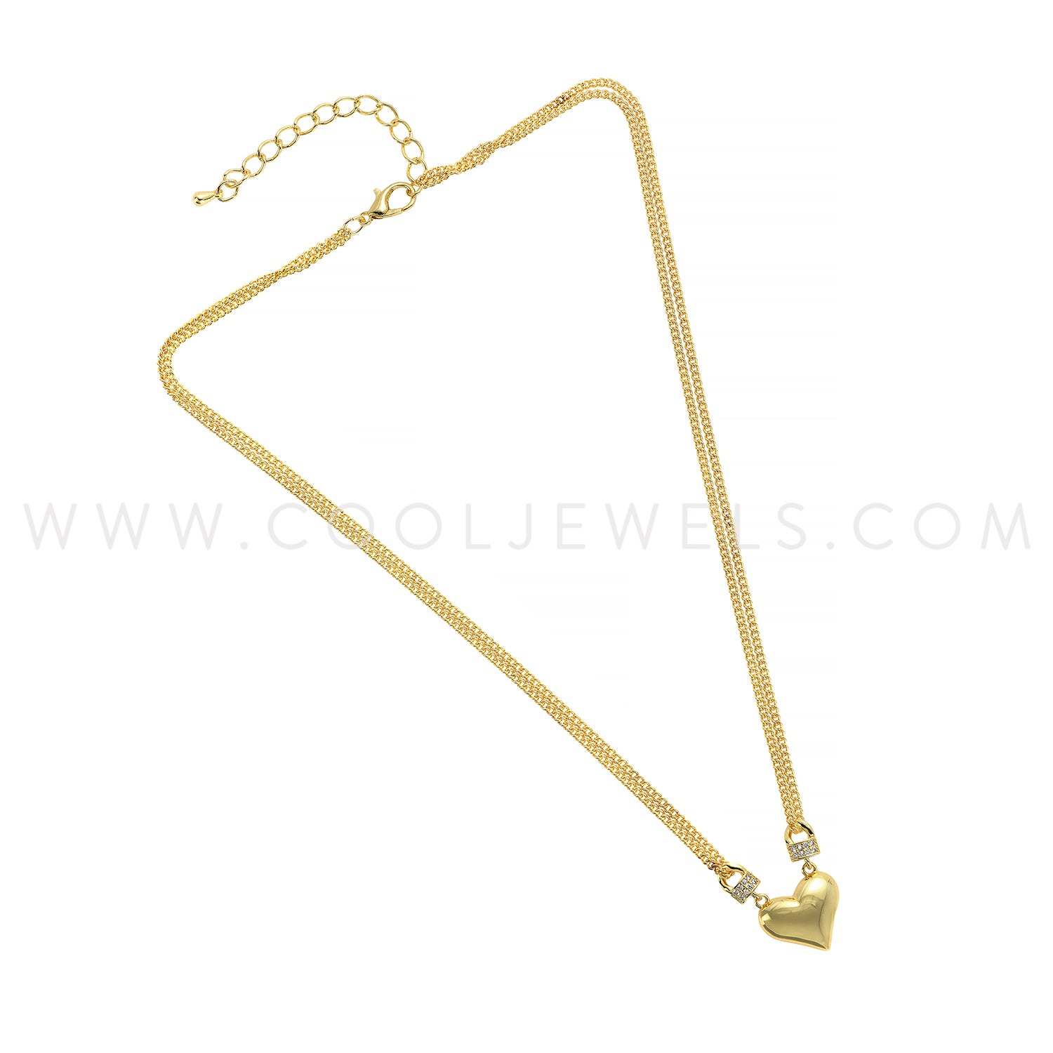 LINK CHAIN NECKLACE WITH RHINESTONE LOCKS & HEART PENDANT - ASSORTED