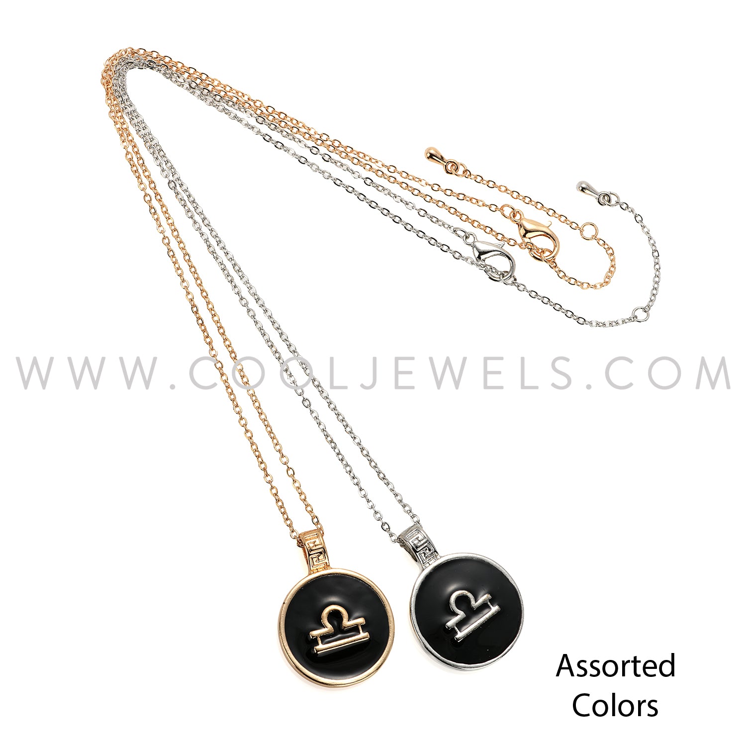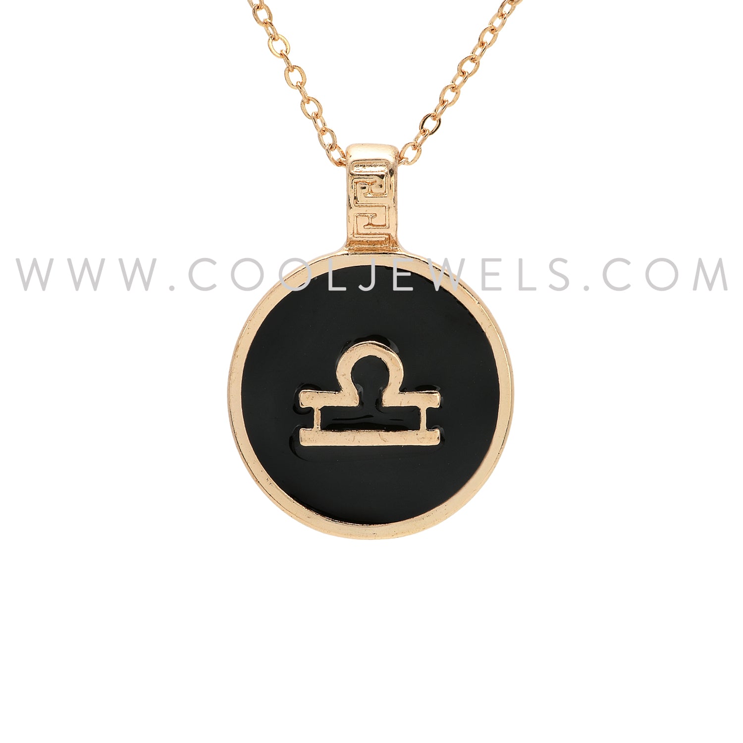 LINK CHAIN NECKLACE WITH ROUND ENAMEL LIBRA ZODIAC PENDANT - CARDED
