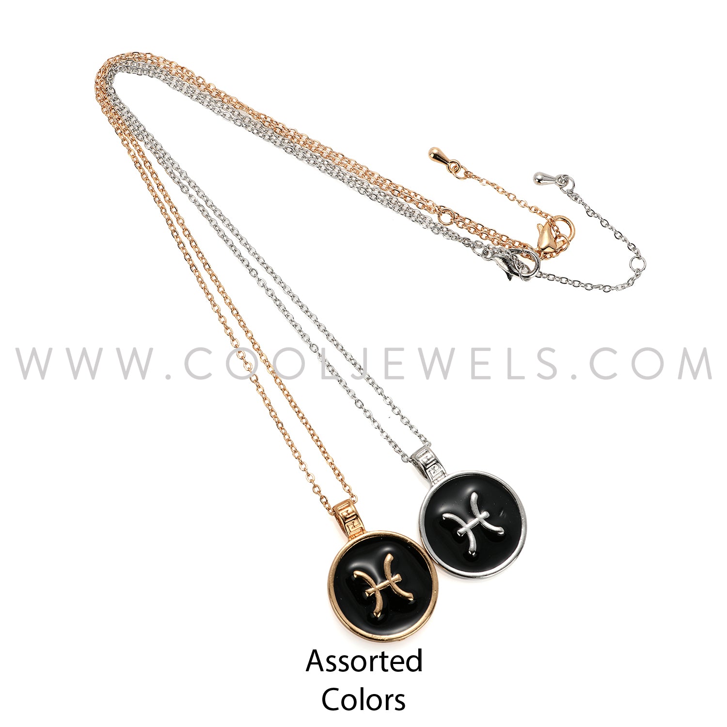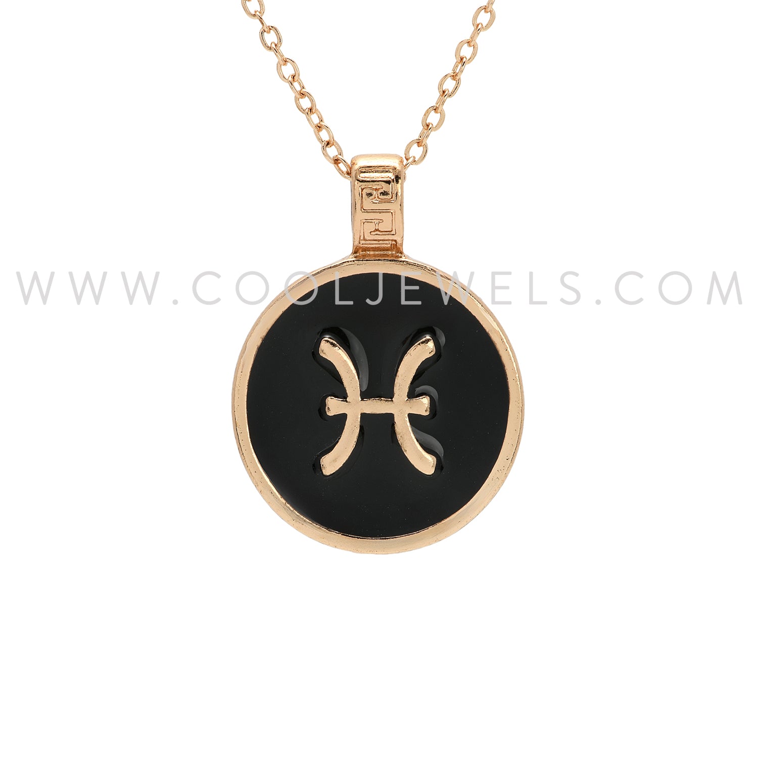 LINK CHAIN NECKLACE WITH ROUND ENAMEL PISCES ZODIAC PENDANT - CARDED