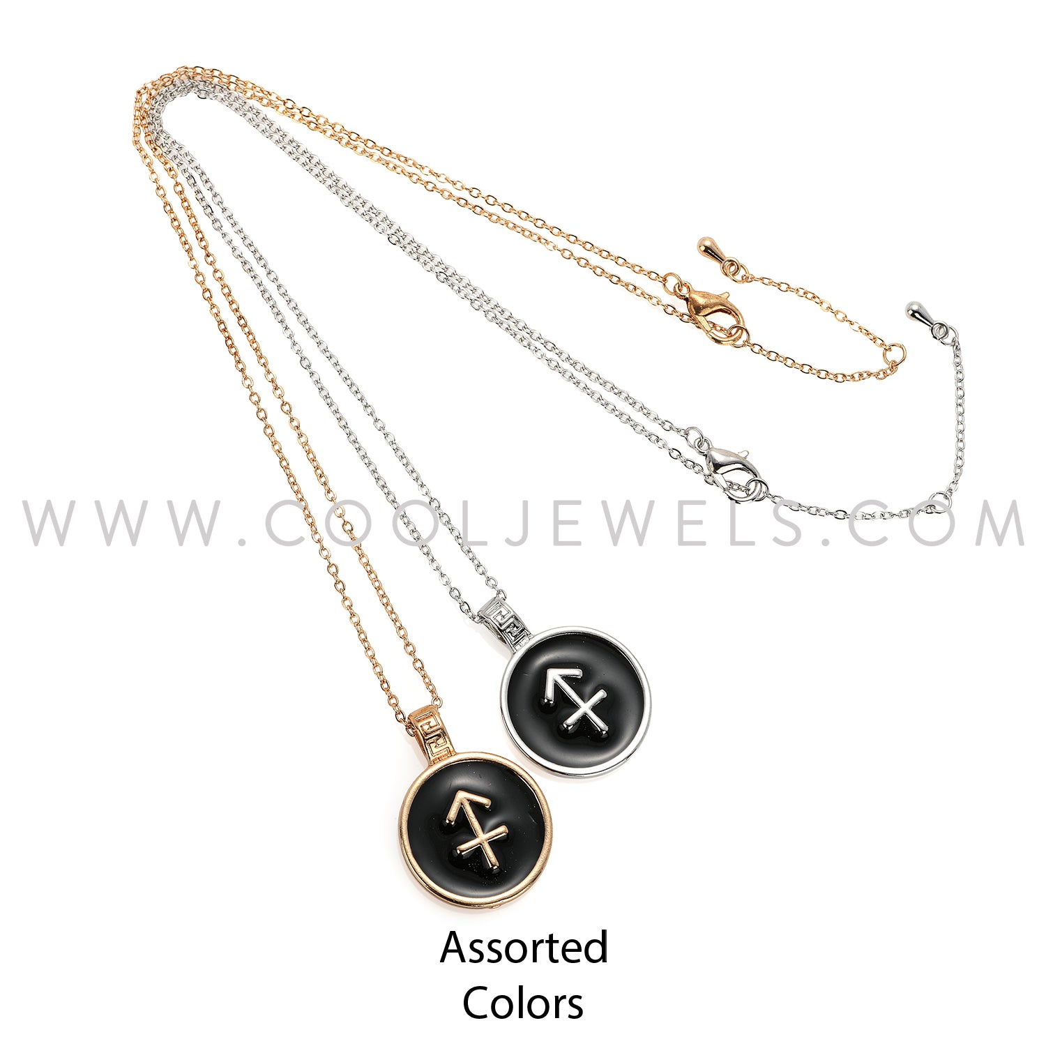 LINK CHAIN NECKLACE WITH ROUND ENAMEL SAGITTARIUS ZODIAC PENDANT - CARDED