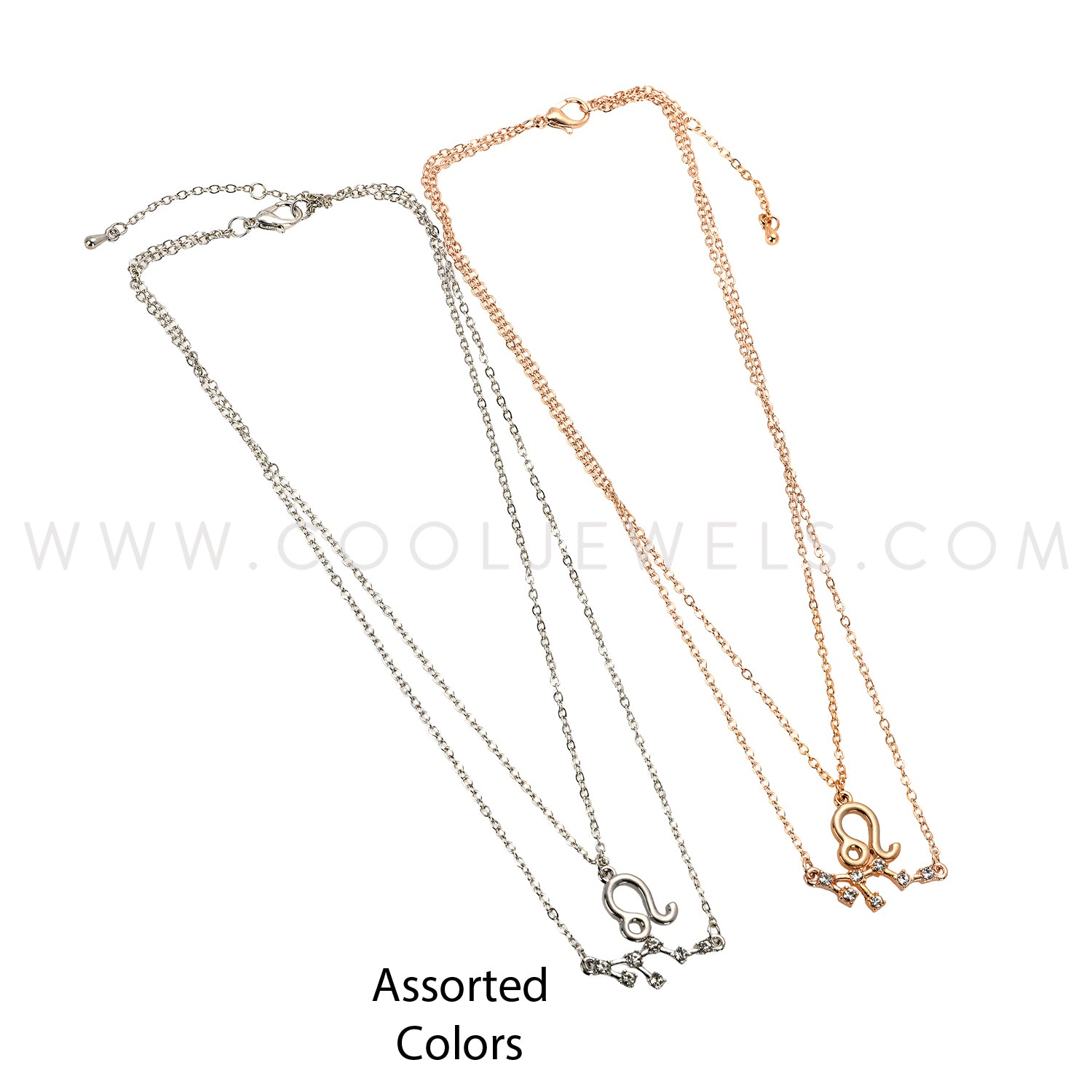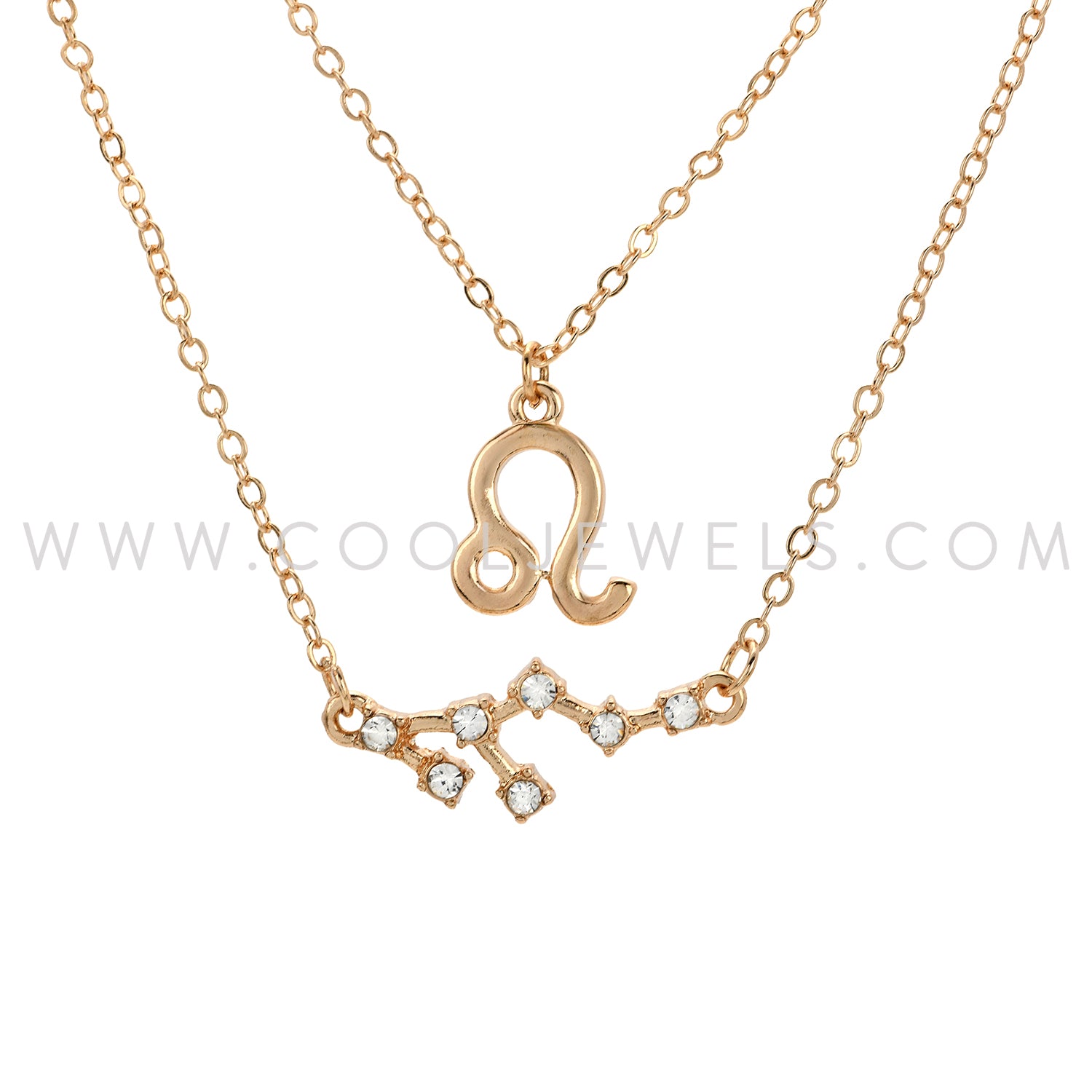 (SET OF 2) LINK CHAIN NECKLACE WITH LEO SYMBOL & CONSTELLATION - CARDED