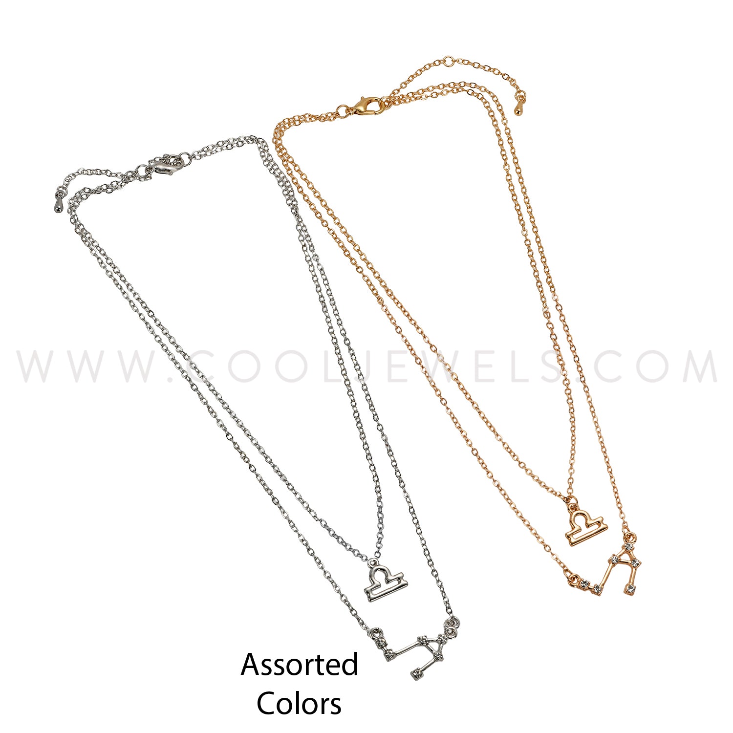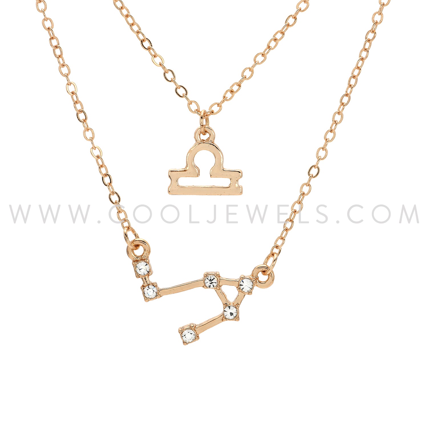 (SET OF 2) LINK CHAIN NECKLACE WITH LIBRA SYMBOL & CONSTELLATION - CARDED
