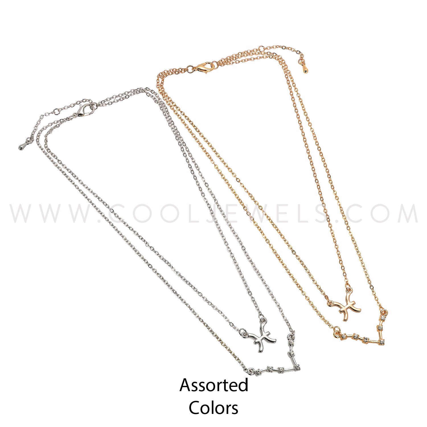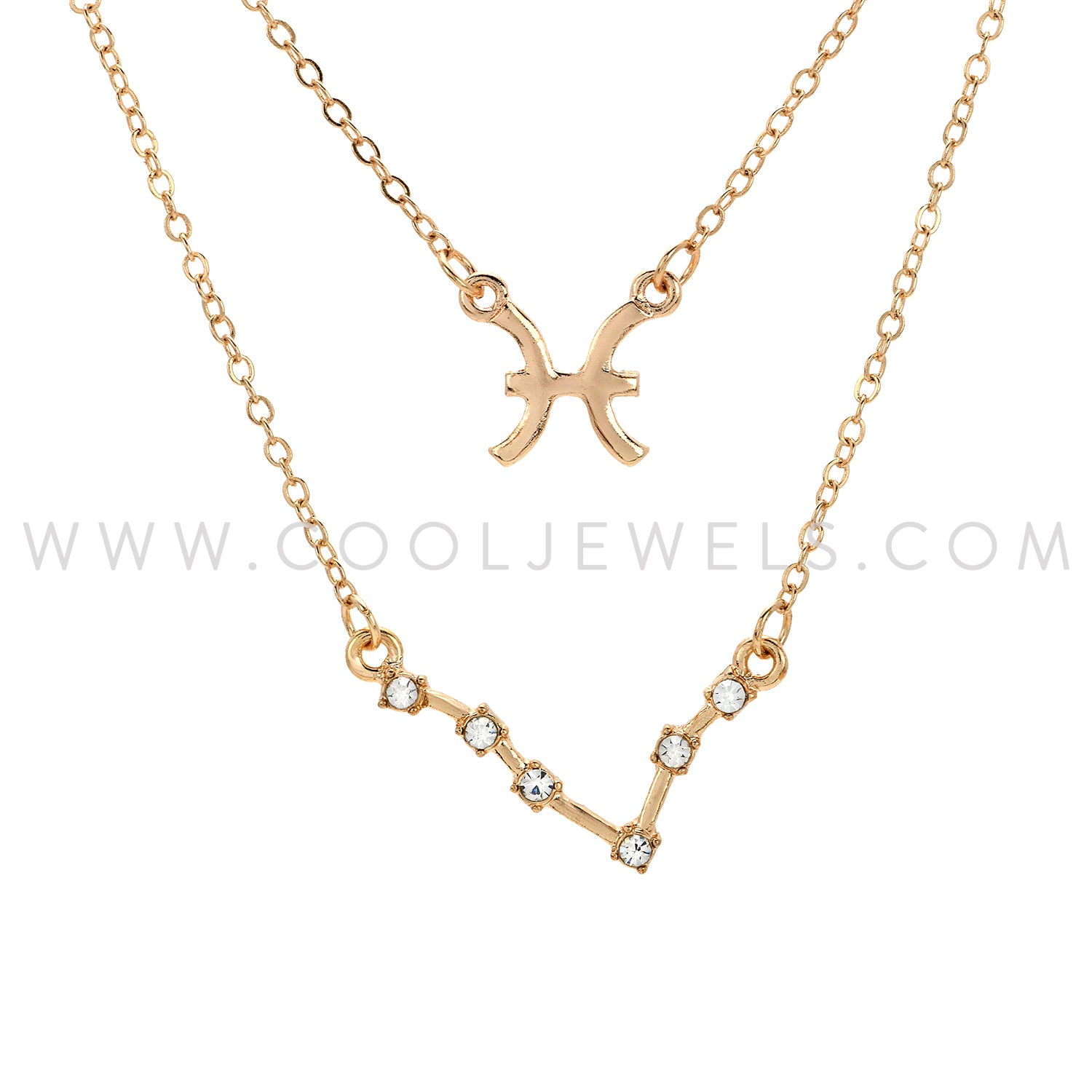 (SET OF 2) LINK CHAIN NECKLACE WITH PISCES SYMBOL & CONSTELLATION - CARDED