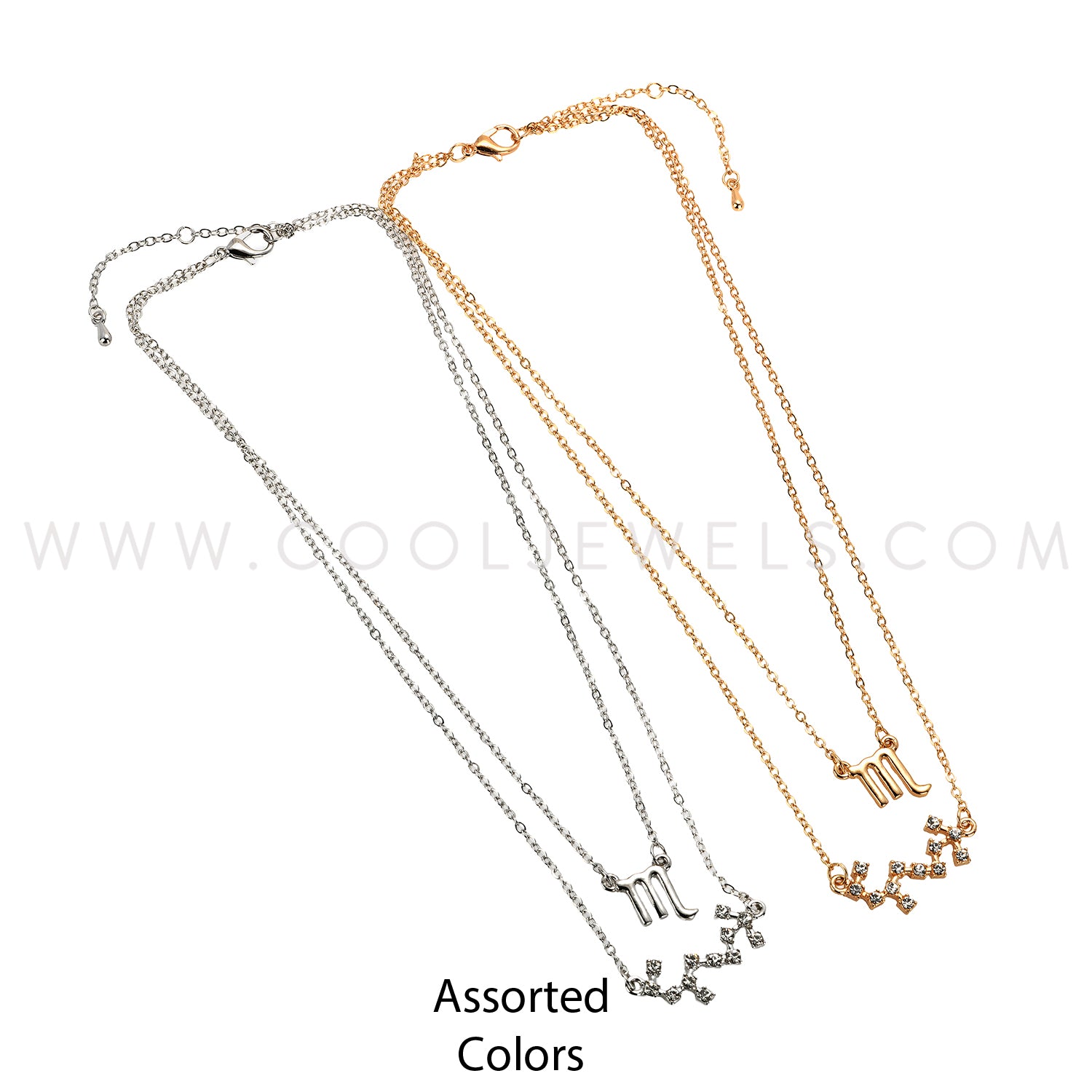 (SET OF 2) LINK CHAIN NECKLACE WITH SCORPIO SYMBOL & CONSTELLATION - CARDED