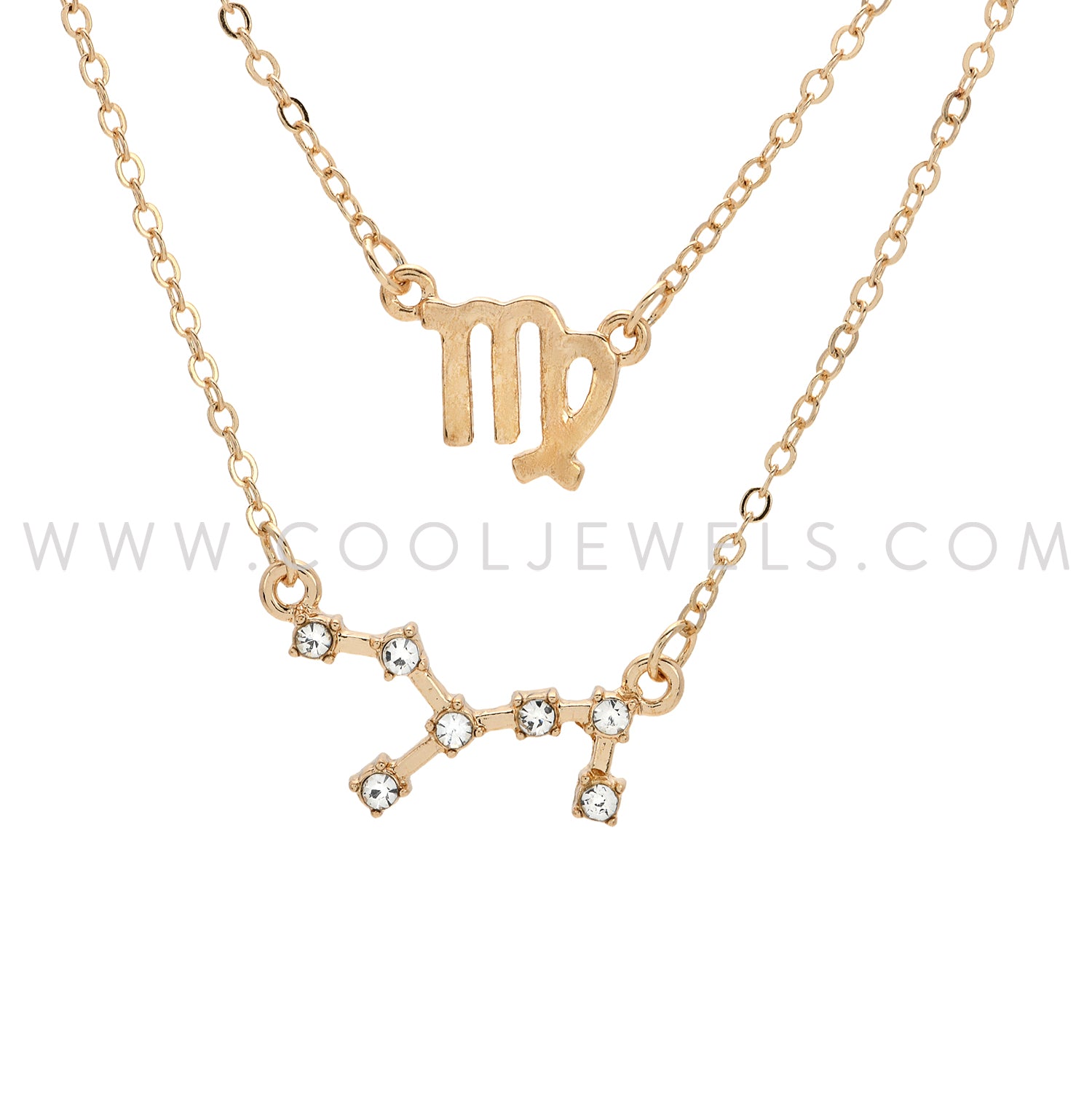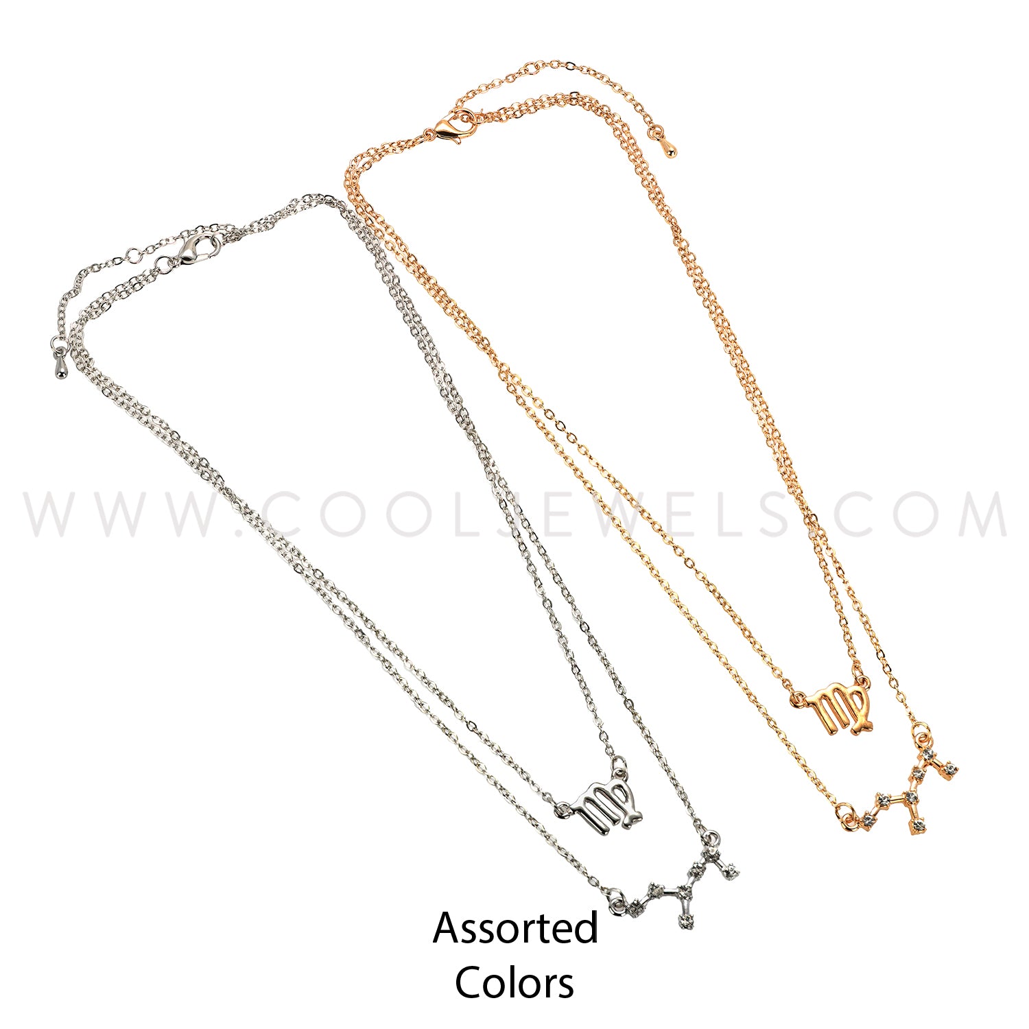 (SET OF 2) LINK CHAIN NECKLACE WITH VIRGO SYMBOL & CONSTELLATION - CARDED