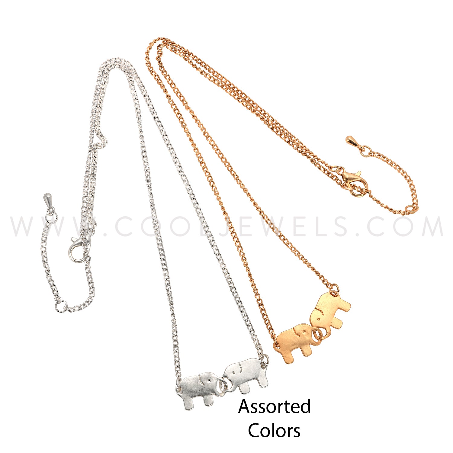 These petite Assorted Gold & Silver Cool Jewels® Elements® by Candace Lauren® Elephants Necklace features two petite elephants with interloping trunks pendants suspended on a chain link necklace.Petite 1/2" Inch Fashion Pendant comes in premium Elements packaging.