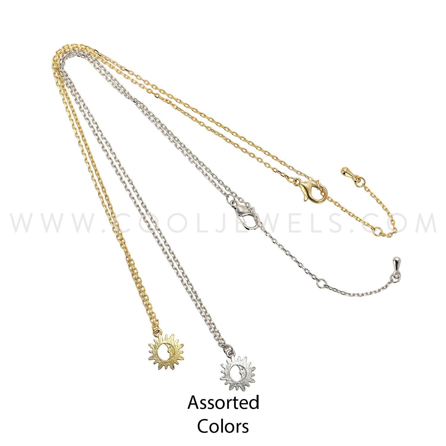 These petite Assorted Gold & Silver Cool Jewels® Elements® by Candace Lauren® Sun & Moon Necklace features a petite sun and moon pendant suspended on a chain link necklace.Petite Fashion Pendant comes in premium Elements packaging.