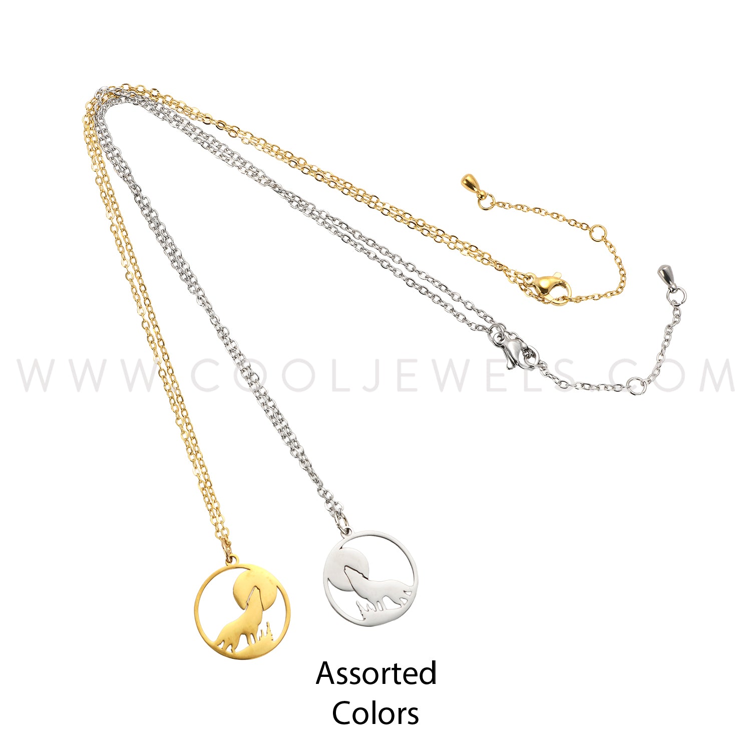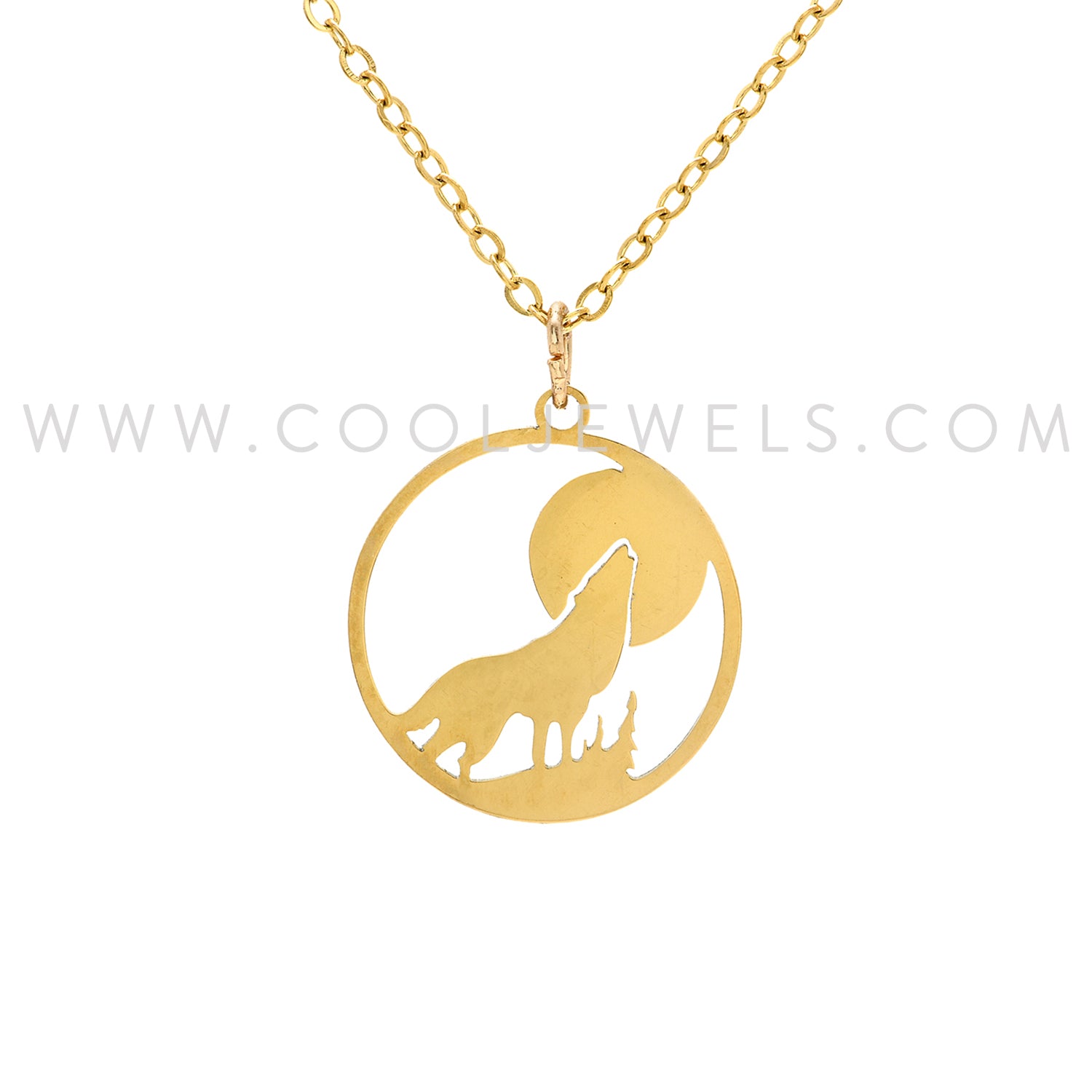 NECKLACE WITH ROUND WOLF, TREE & MOON PENDANT - CARDED