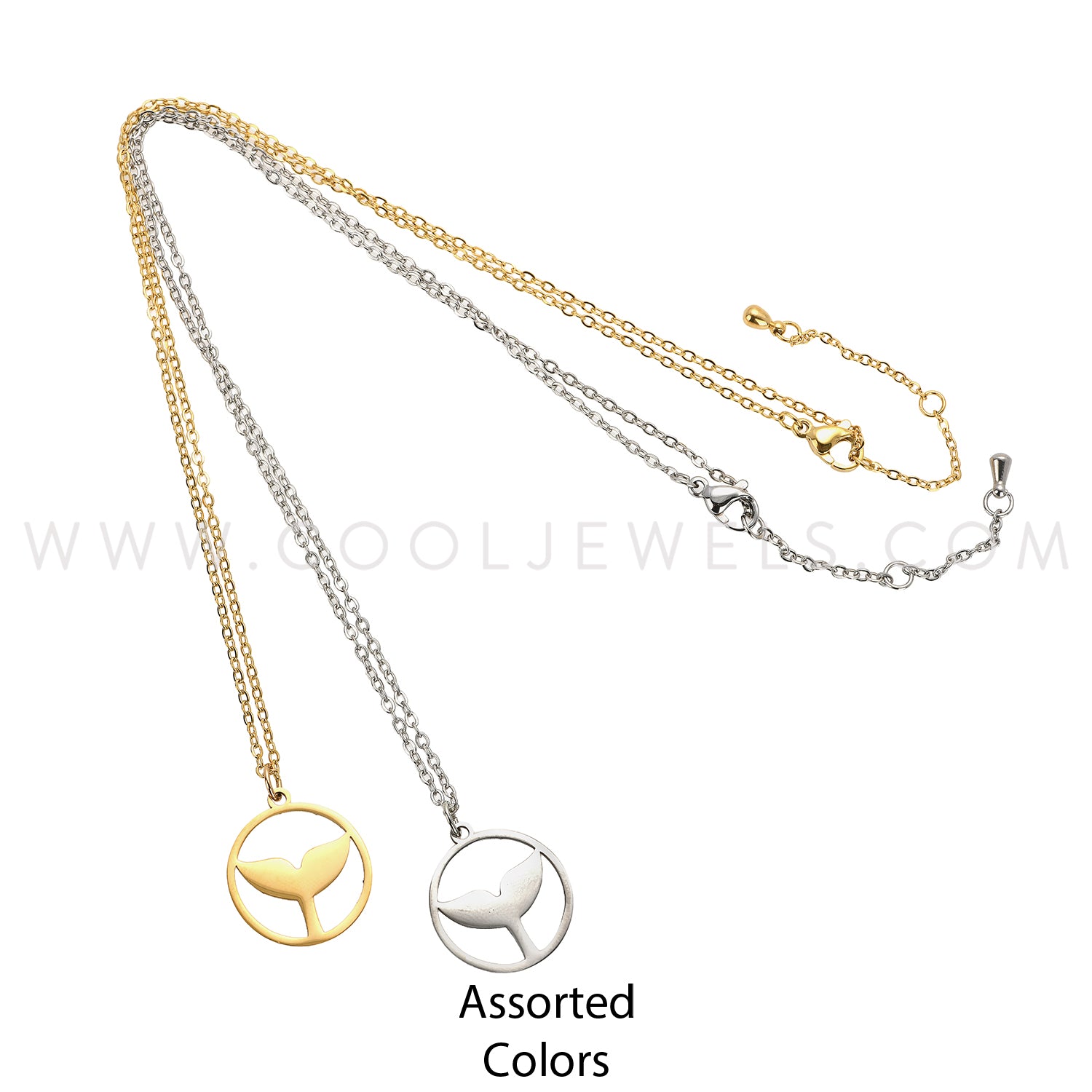 These Assorted Silver & Gold Cool Jewels® Elements by Candace Lauren® Whale Tail Necklaces features a round whale tail pendant on a chain link necklace.Fashion Pendant comes in premium Elements packaging.