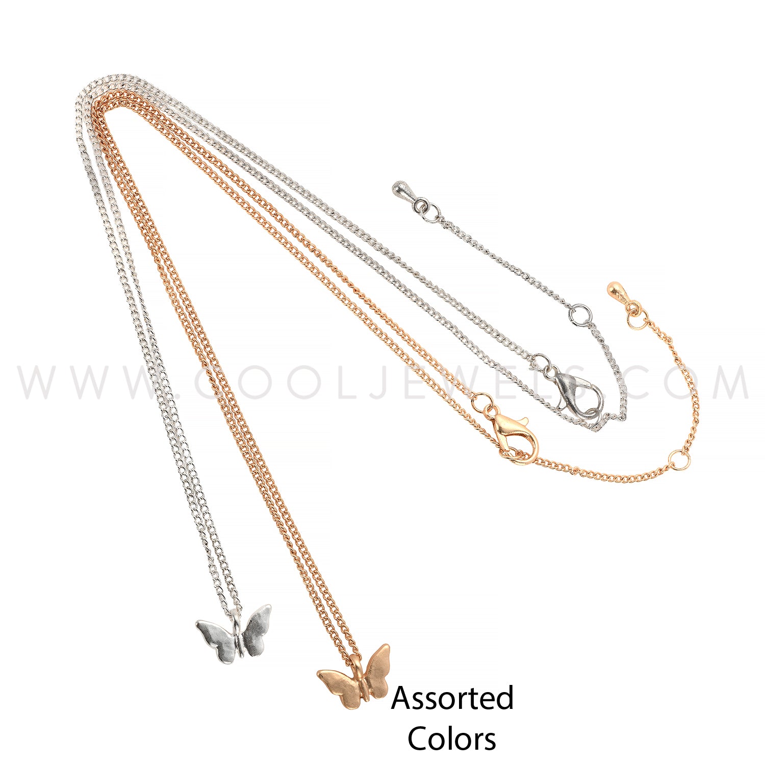 These small & cute Assorted Gold & Silver Petite Butterfly Pendant Necklaces feature a petite butterfly charm suspended on a silver or gold chain necklace.Petite 1/2" Inch Fashion Pendant.