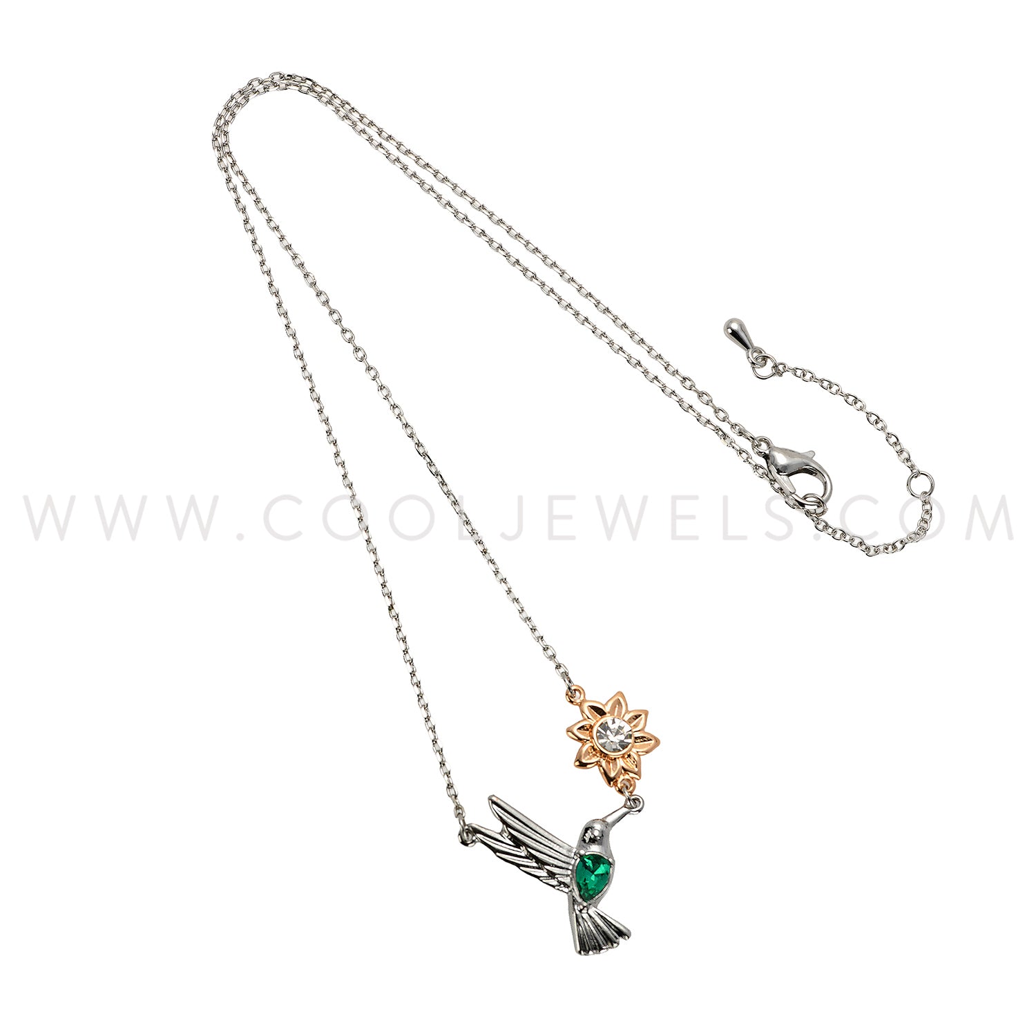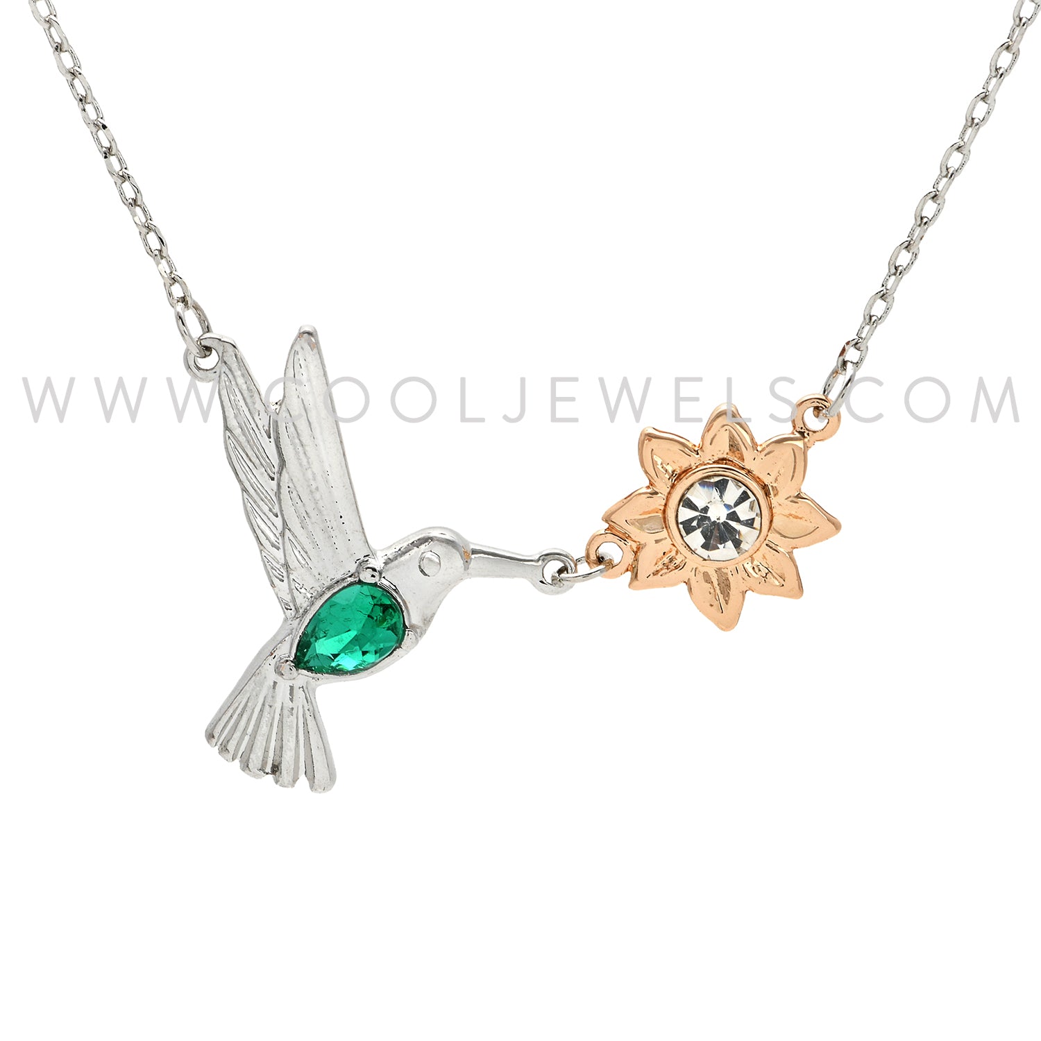 LINK CHAIN NECKLACE WITH HUMMINGBIRD & FLOWER PENDANT - CARDED