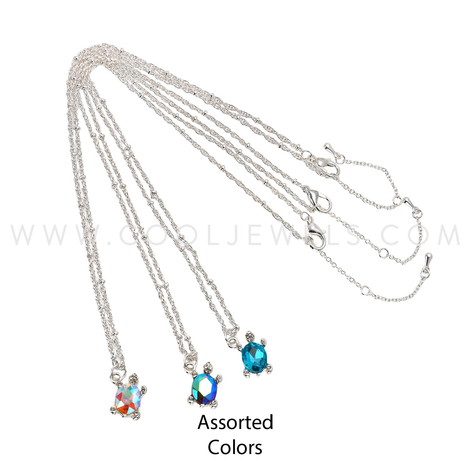CHAIN NECKLACE WITH AB STONE TURTLE PENDANT ASSORTED - CARDED