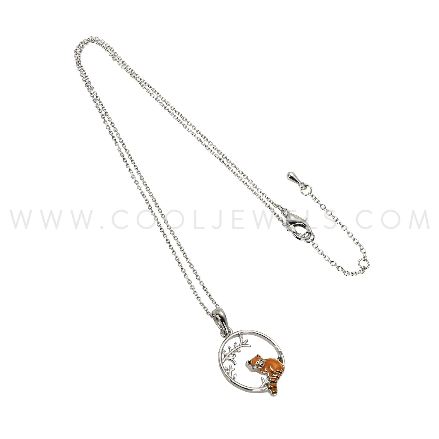 LINK CHAIN NKECKLACE WITH ROUND RED PANDA PENDANT - CARDED