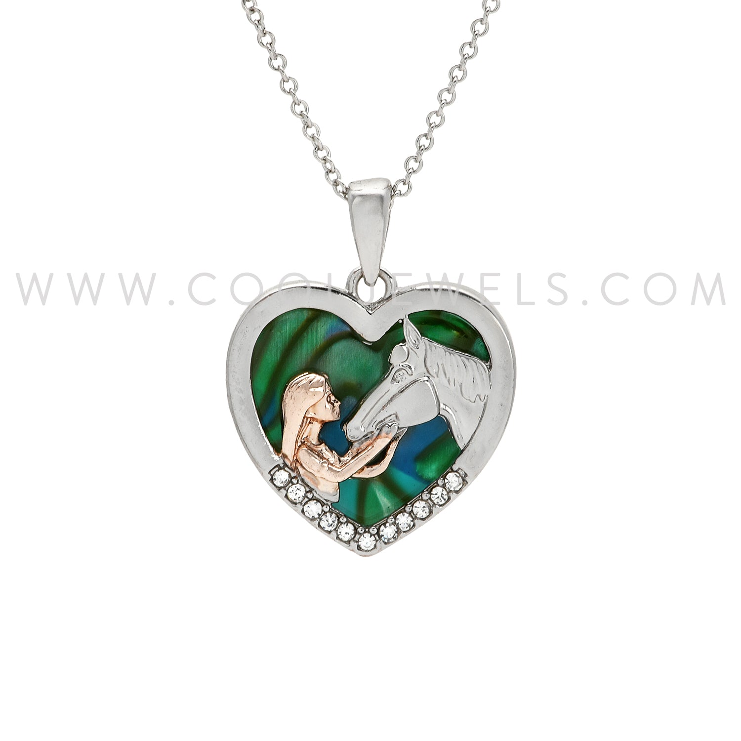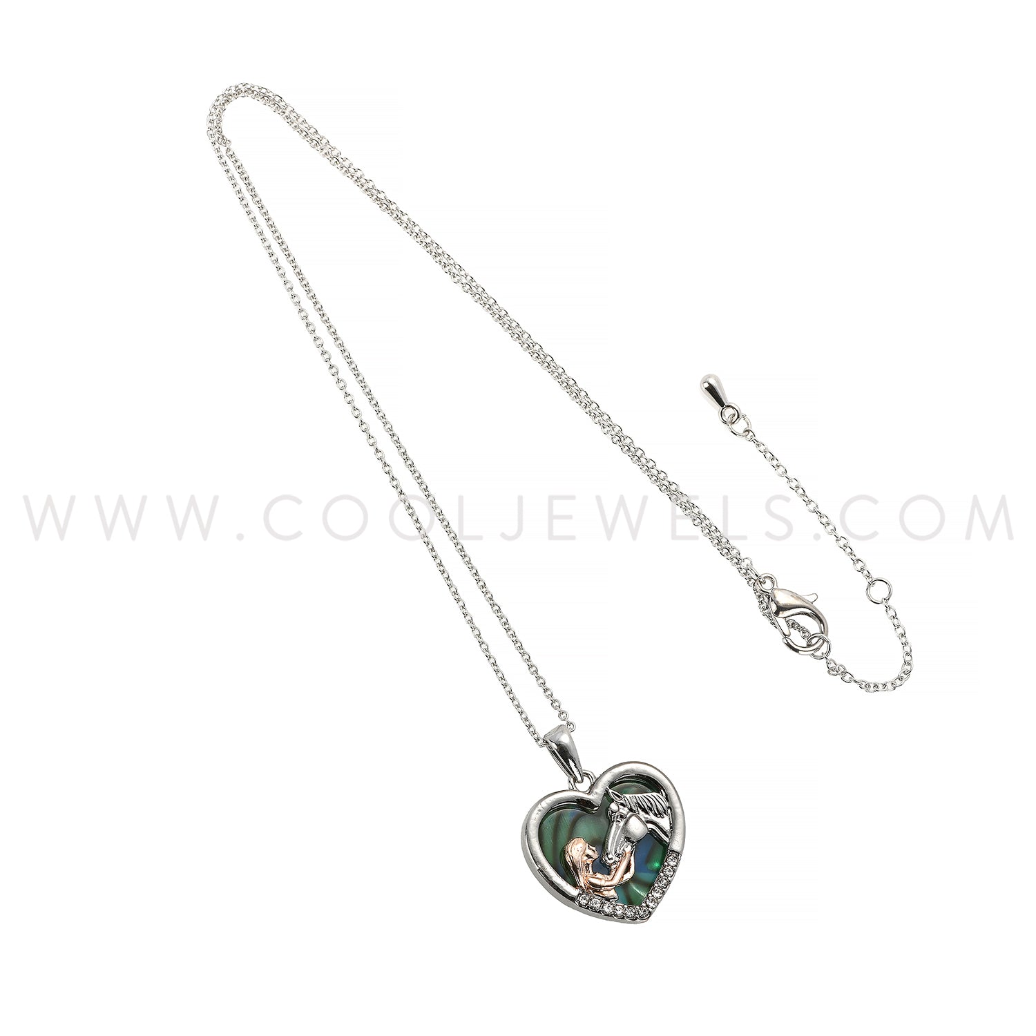 LINK CHAIN NECKLACE WITH HEART-SHAPED PENDANT WITH GIRL & HORSE - CARDED