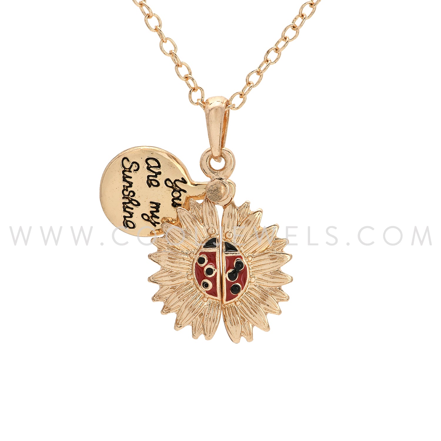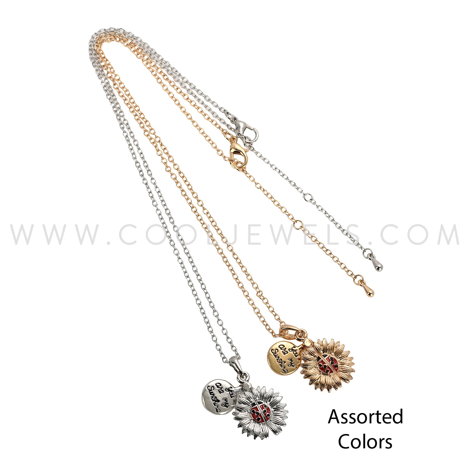 LINK CHAIN NECKLACE WITH FLOWER LADYBUG PENDANT ASSORTED - CARDED