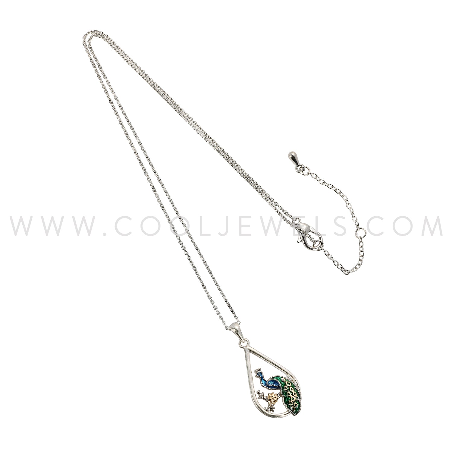 LINK CHAIN NECKLACE WITH TEARDROP SHAPED PENDANT WITH PEACOCK - CARDED