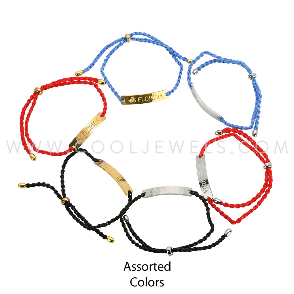 Cord Braided Slider Bracelet with FLORIDA Engraved Pendant.
