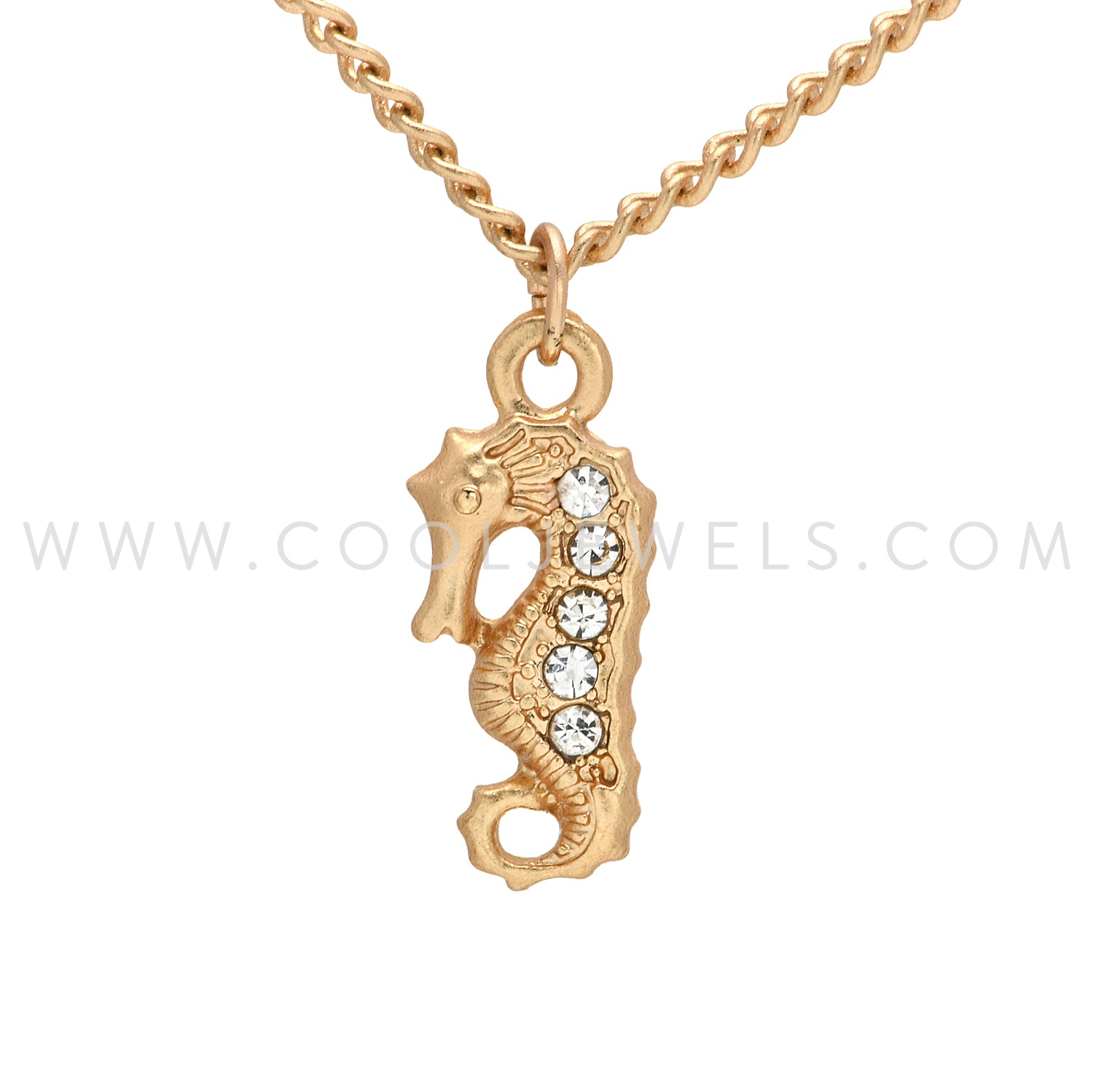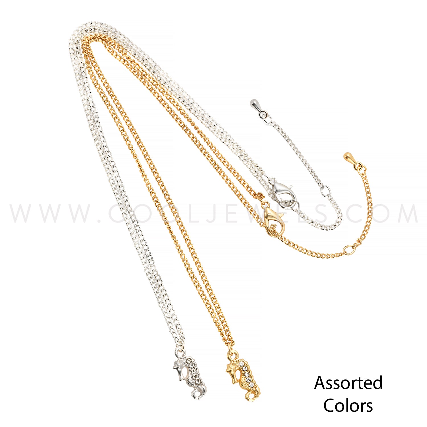 These Assorted Gold & Silver Cool Jewels® Elements® by Candace Lauren® Rhinestone Seahorse Necklace features a black & white rhinestone seahorse on a chain link necklace.Petite 1/2" Inch Fashion Pendant comes in premium Elements packaging.