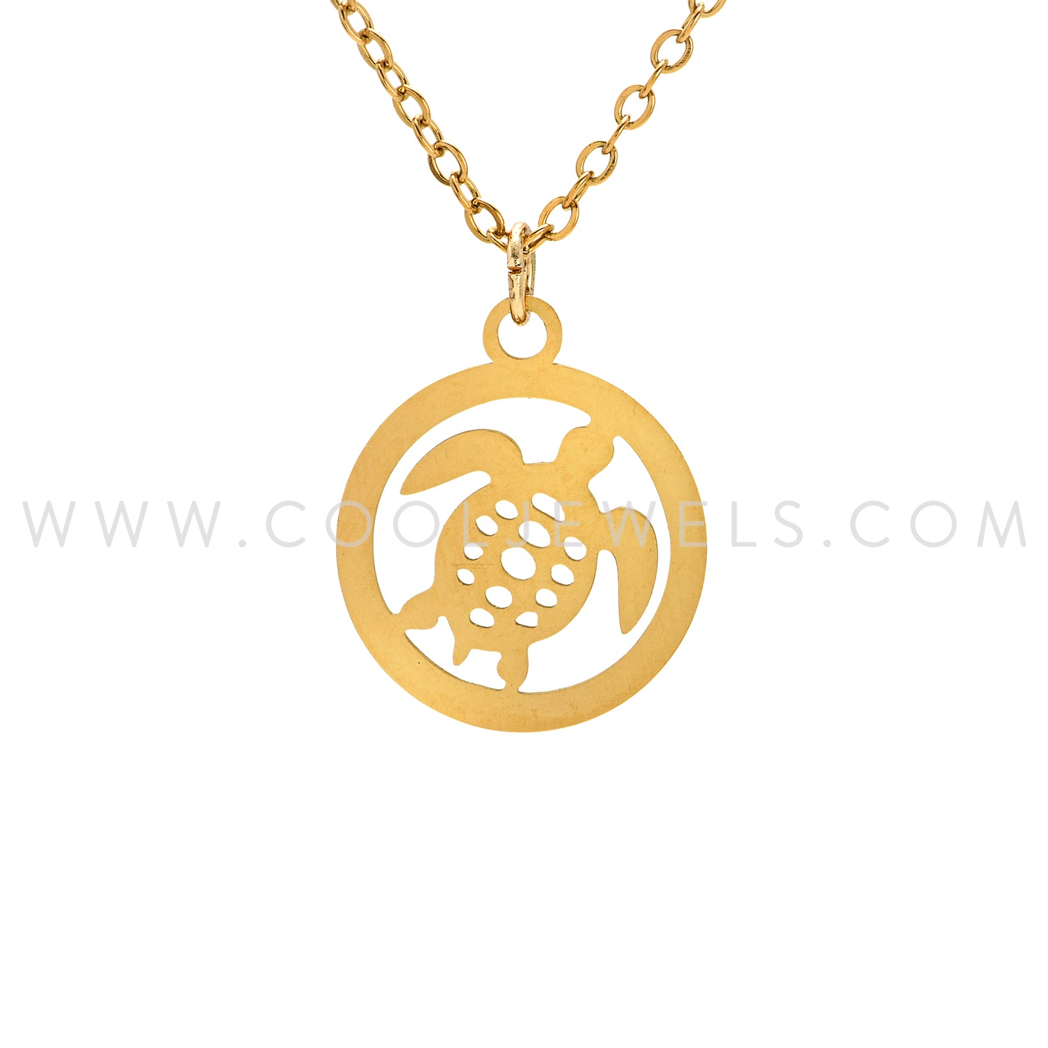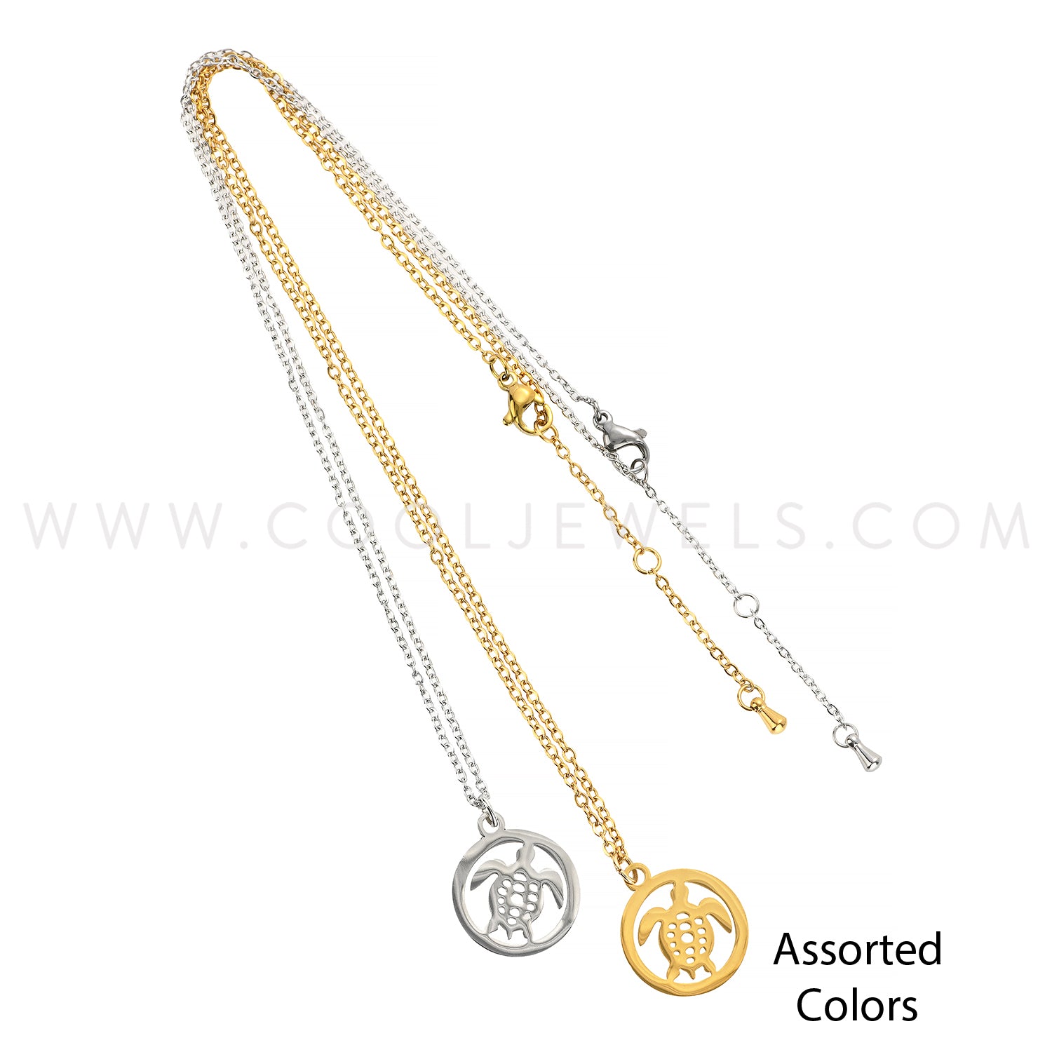 STAINLESS STEEL CHAIN NECKLACE WITH TURTLE PENDANT ASSORTED COLORS - CARDED