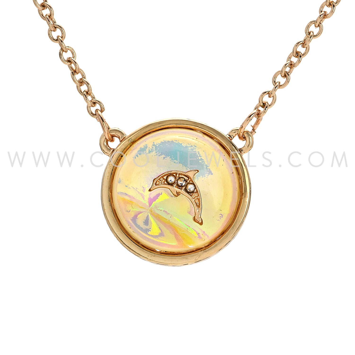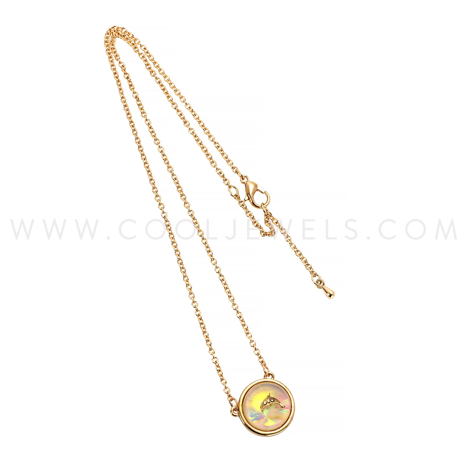 GOLD NECKLACE WITH ROUND PAUA SHELL & DOLPHIN PENDANT - CARDED