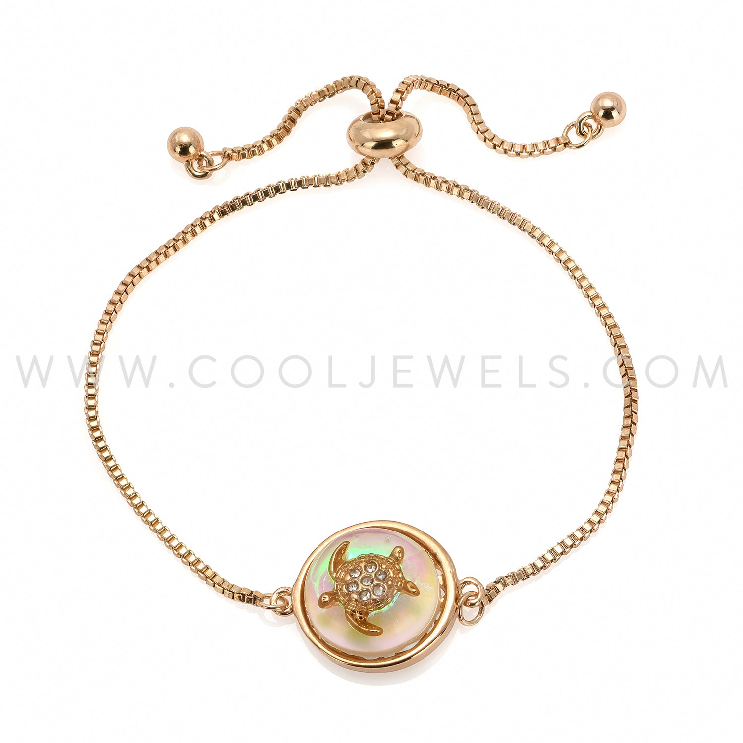 Cool Jewels® Elements by Candace Lauren® Gold Paua Shell Turtle with Rhinestones Bracelet