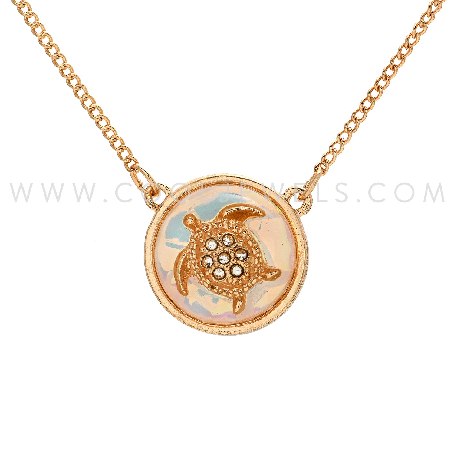 These petite Cool Jewels® Elements by Candace Lauren® Gold Paua Shell Turtle with Rhinestones Necklace features a gold paua shell with turtle and rhinestone inlay pendant suspended on a gold chain link necklace.Petite 1/2" Inch Fashion Pendant comes in premium Elements packaging.