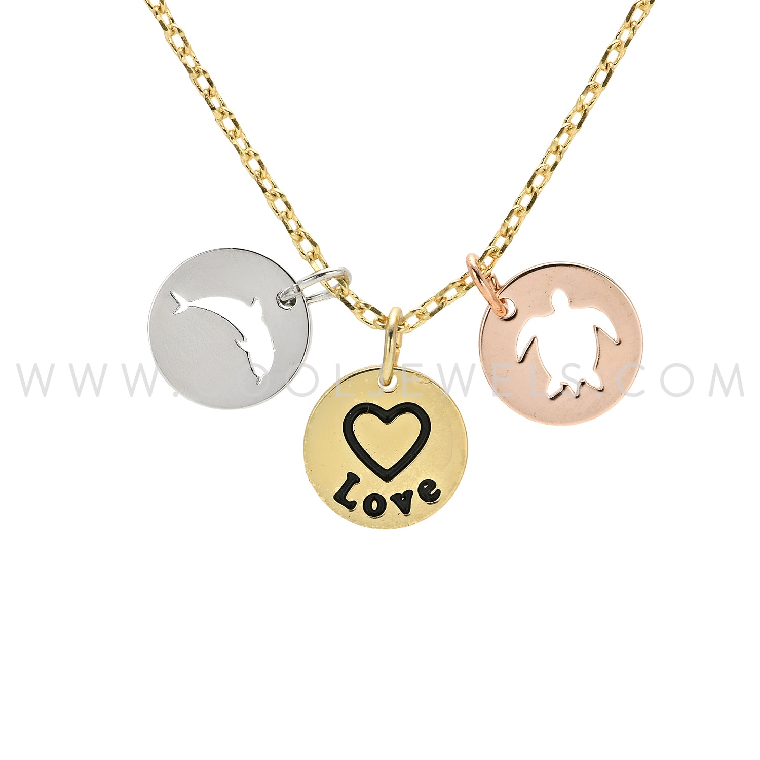 LINK CHAIN NECKLACE WITH DISC DOLPHIN